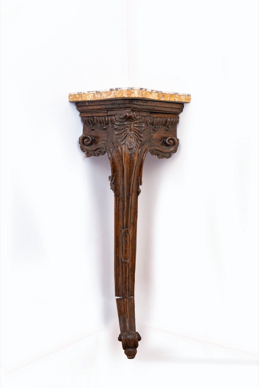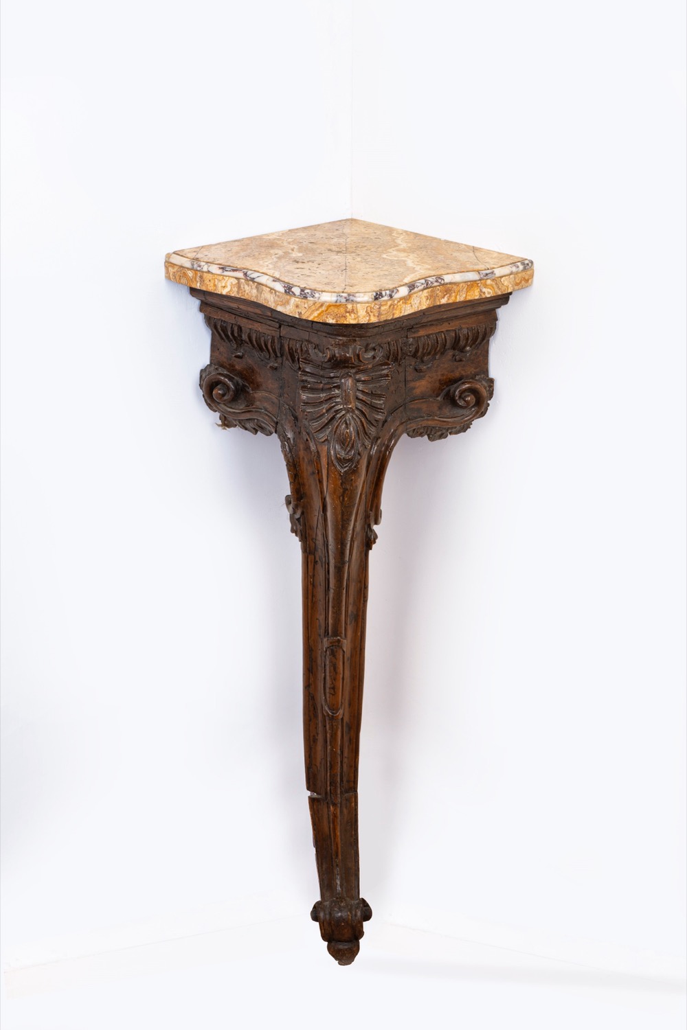 Angoliera in legno intagliato, con piano in marmo, secolo XVIII