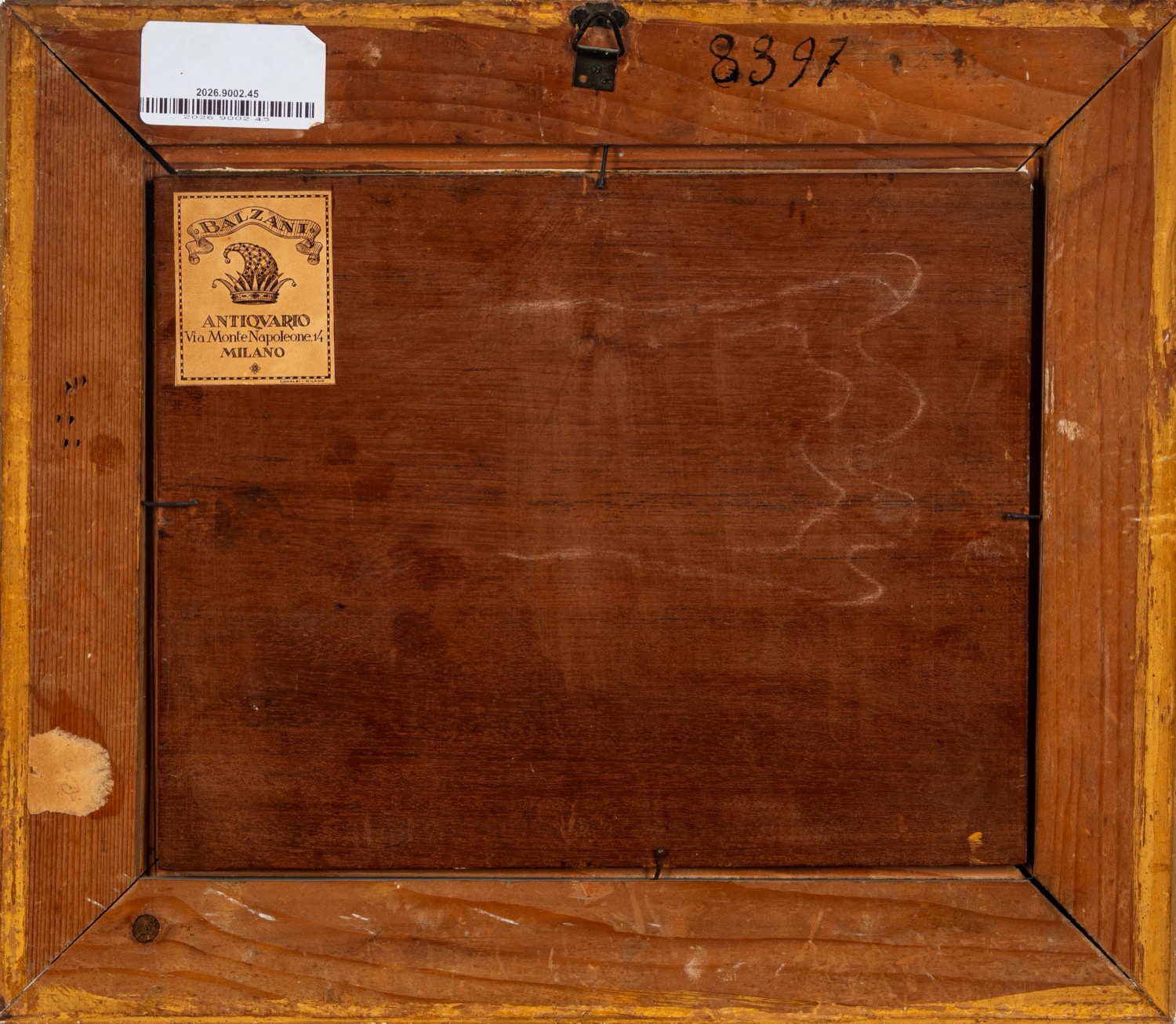 al retro, sulla cornice, etichetta della Galleria Balzani di Milano