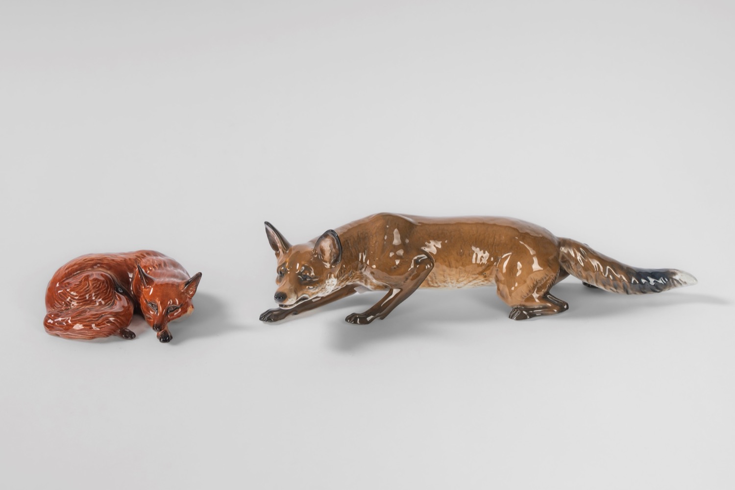 Due volpi in porcellana policroma. Rosenthal, Germania e Beswick, Inghilterra. Secolo XX