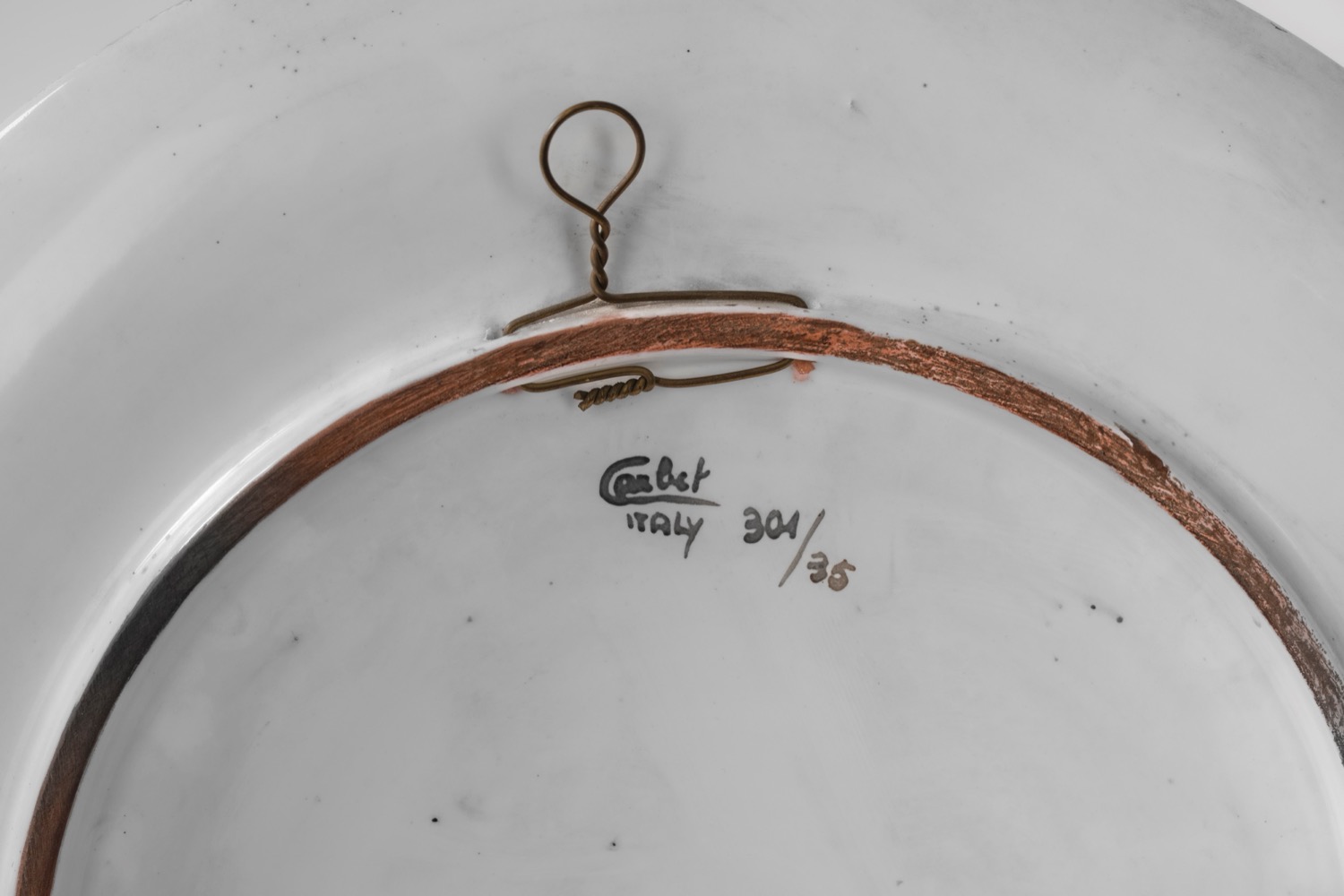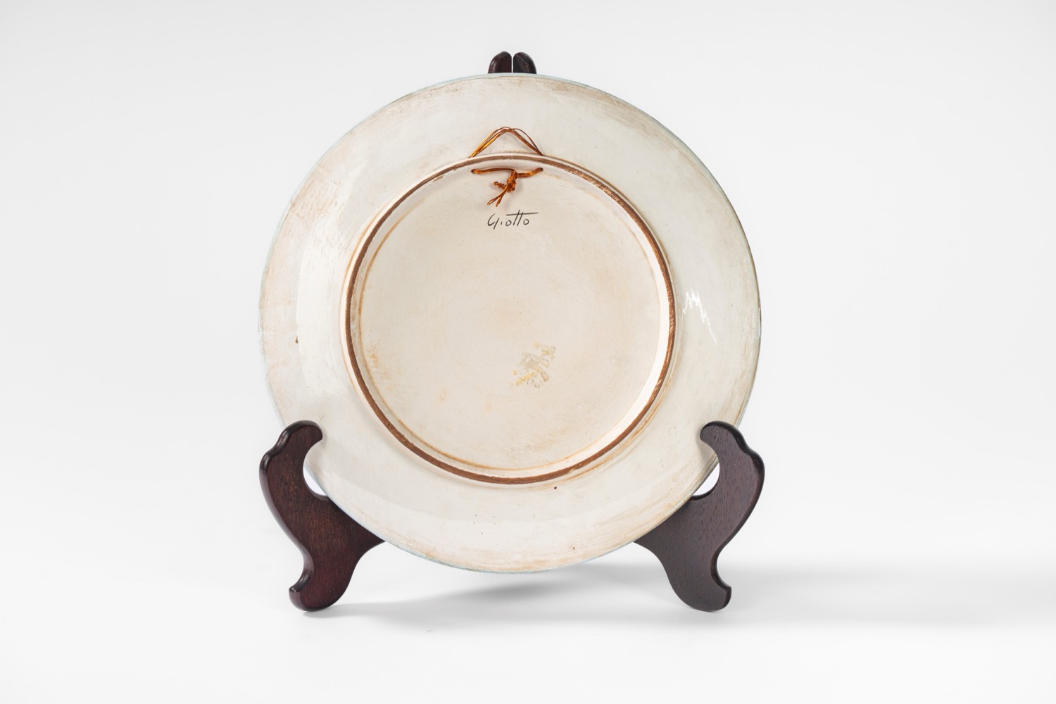 La manifattura Carbet, Carotti e Bettucci, eseguiva ceramiche di grande qualità stilistica e tecnica che esportava soprattutto negli Stati Uniti.Un piatto firmato Faggi.
