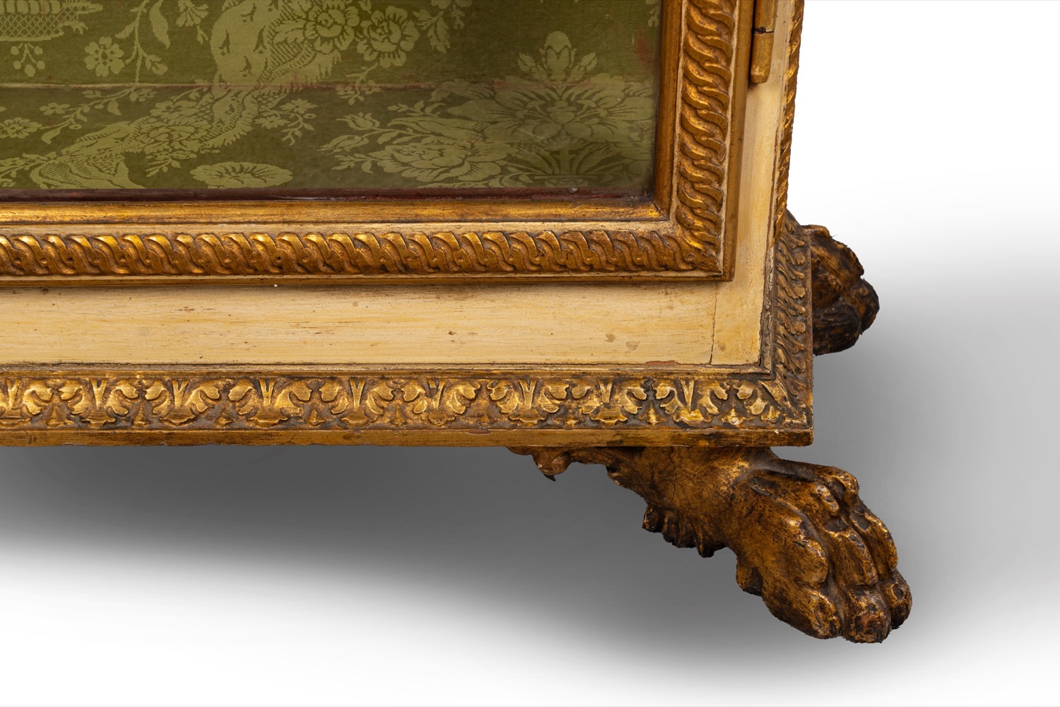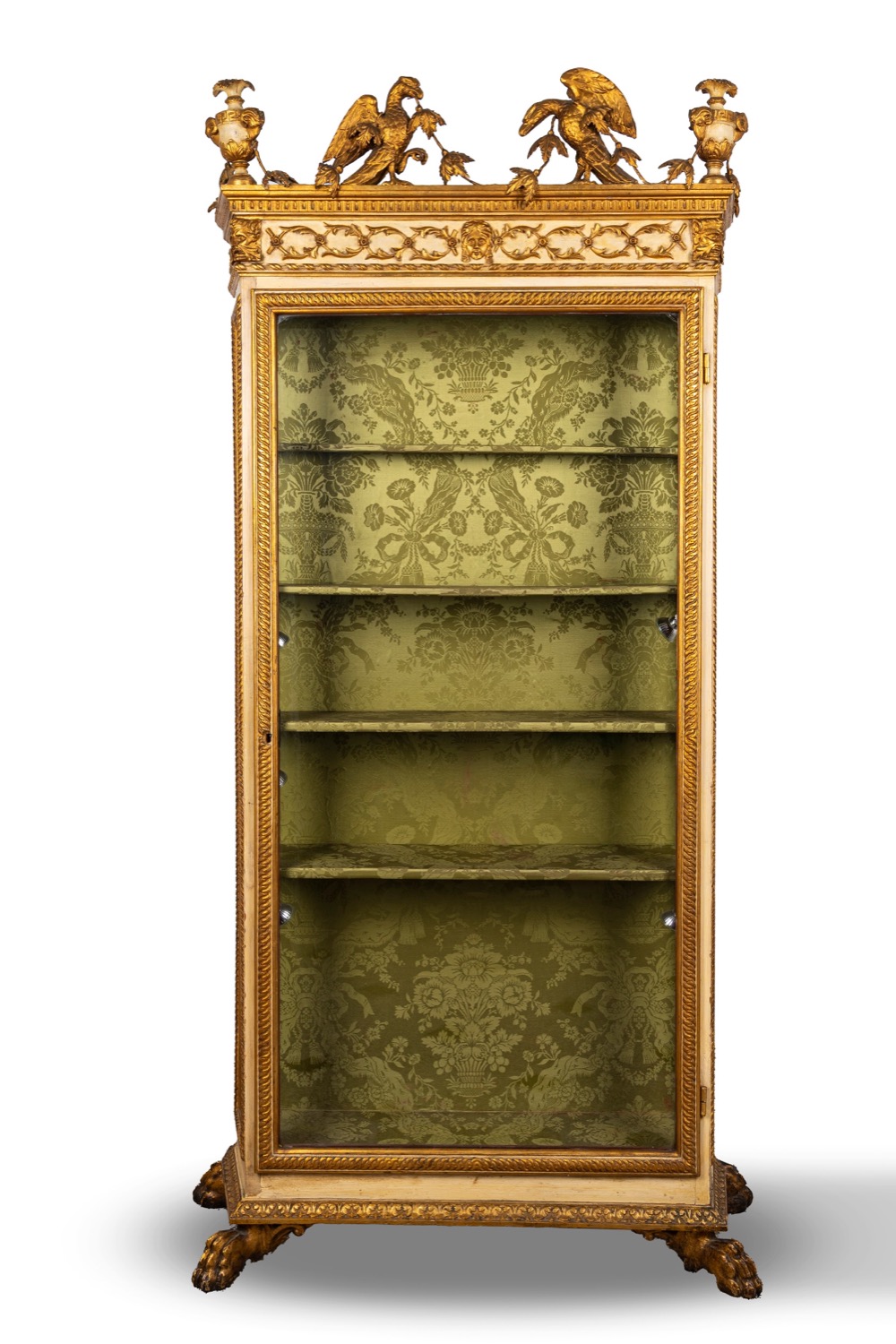 Vetrina in stile Impero in legno laccato e dorato, fine secolo XIX - inizi secolo XX