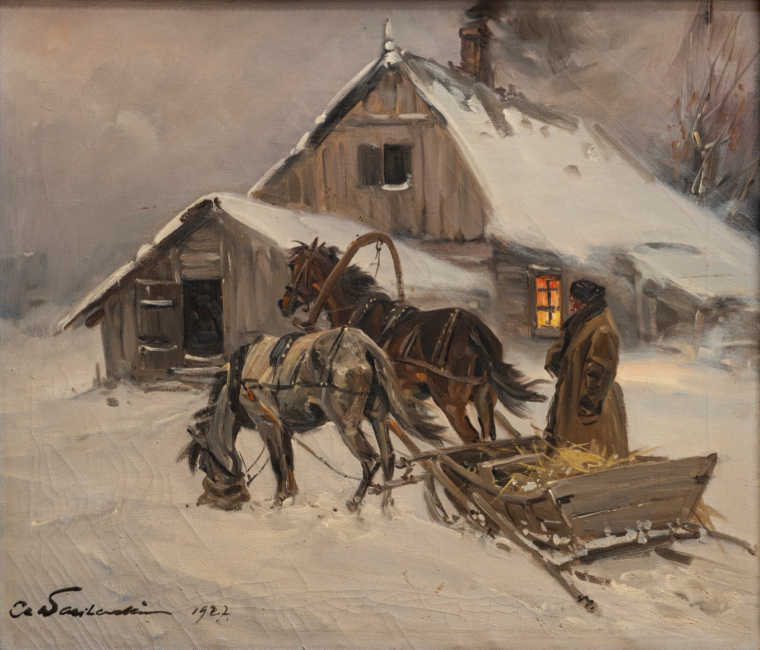 Scuola russa inizi secolo XX - Inverno presso la dacia, 1927