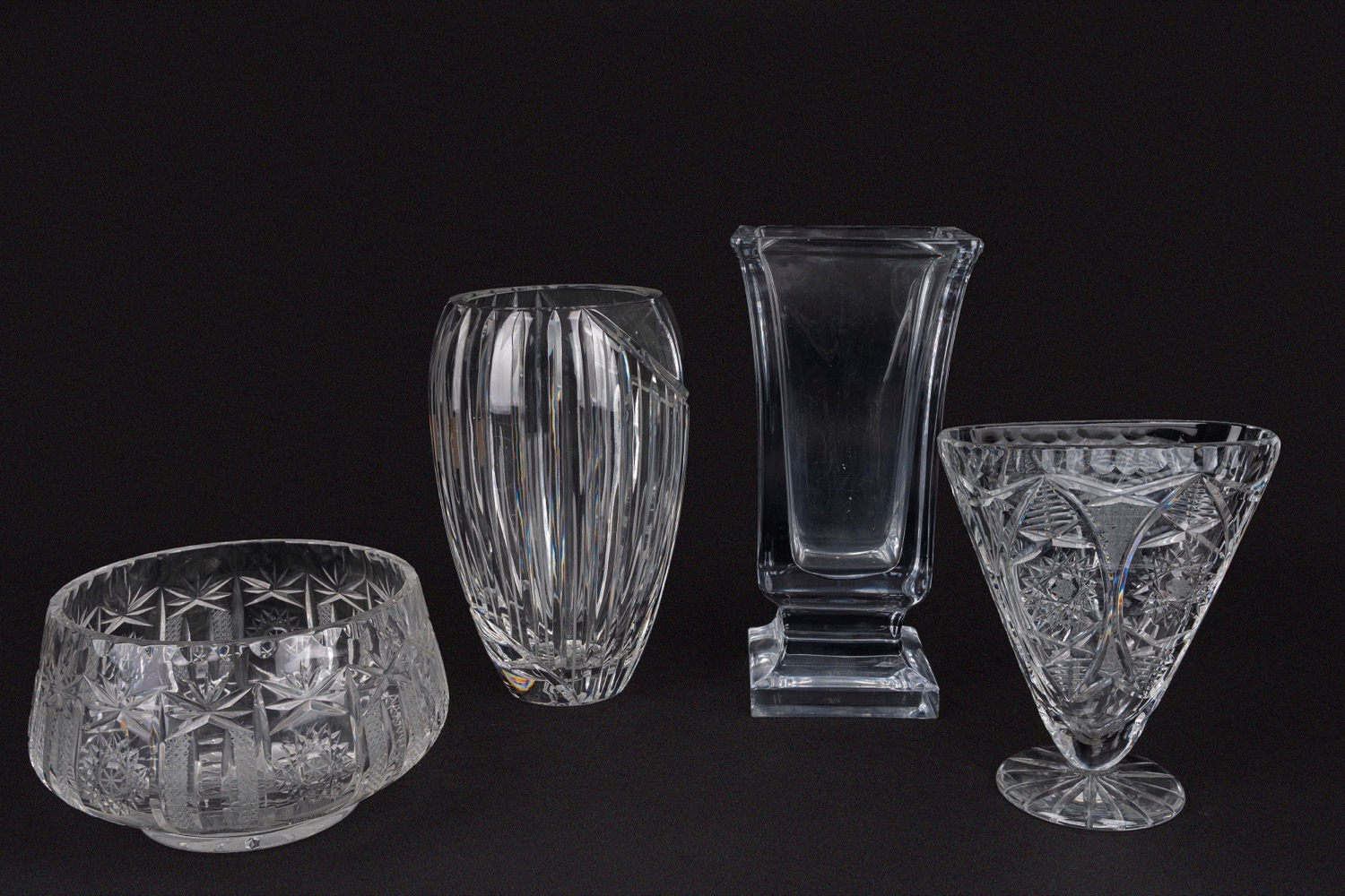 Lotto composto da quattro vasi in cristallo, di cui due molati