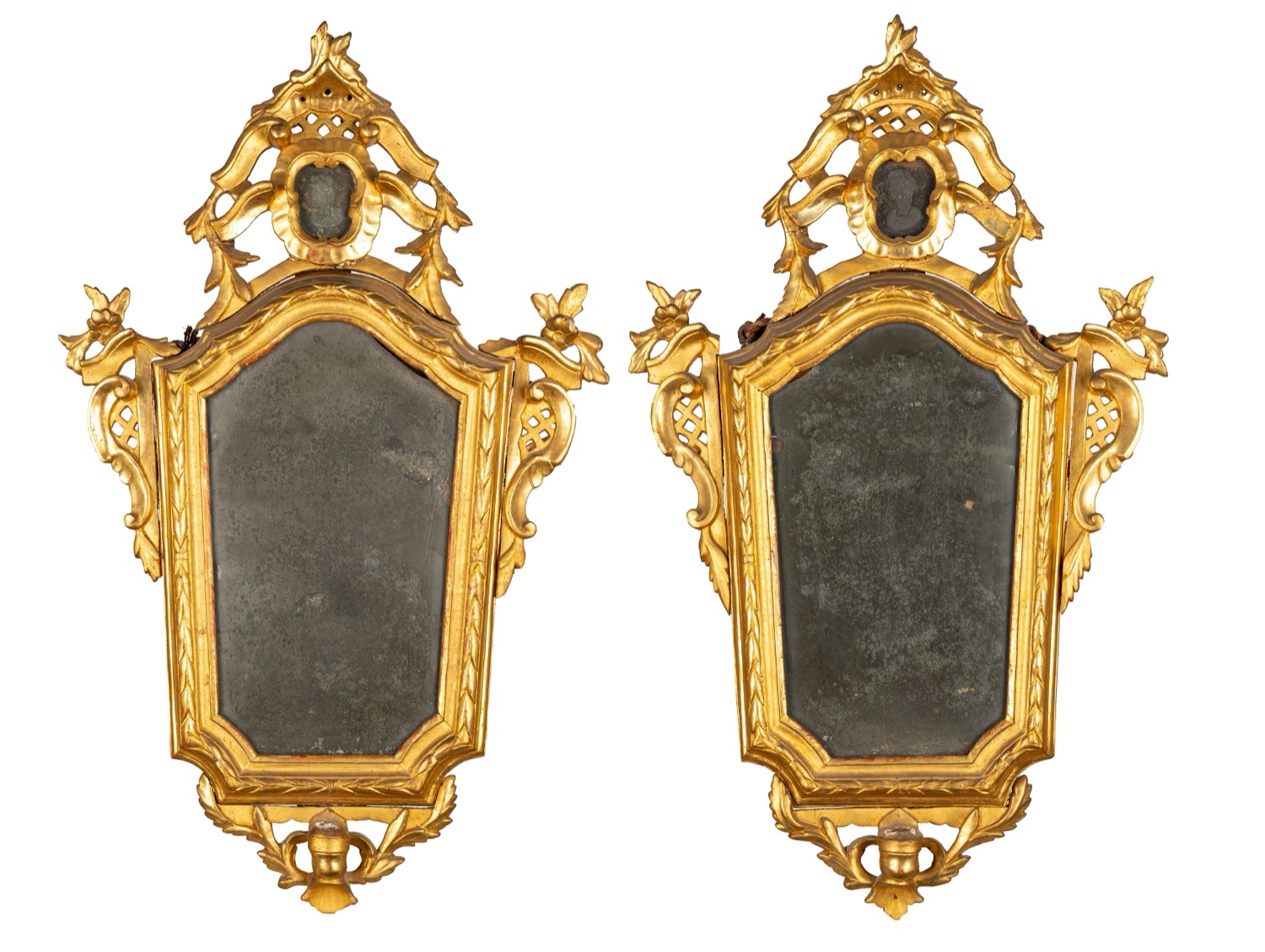 difetti, mancanze e restauricon specchio al mercurio e motivo a reticolato e a rocaille sulla sommità e ai lati