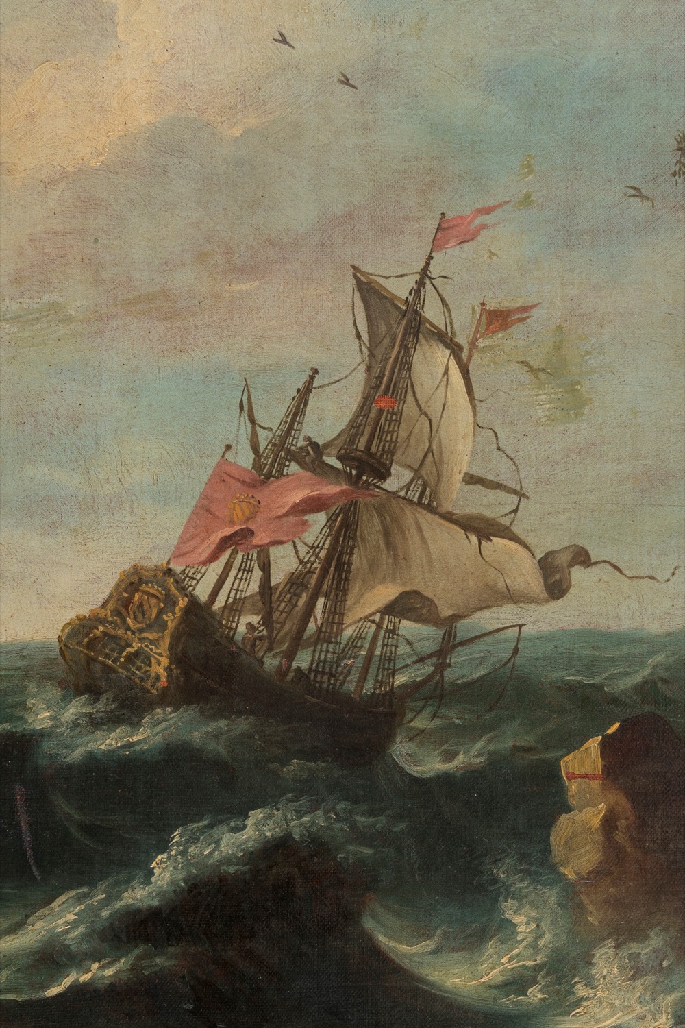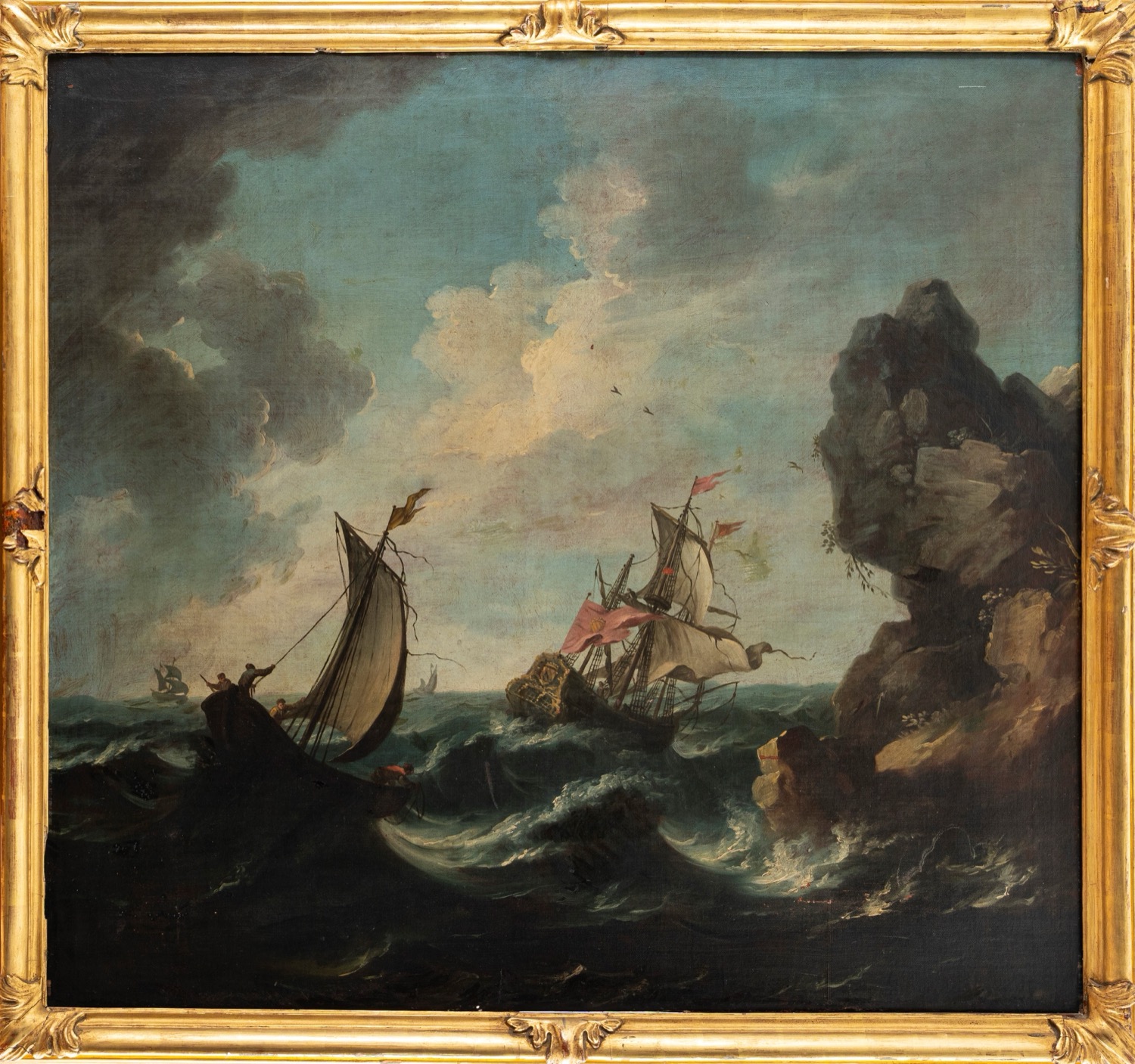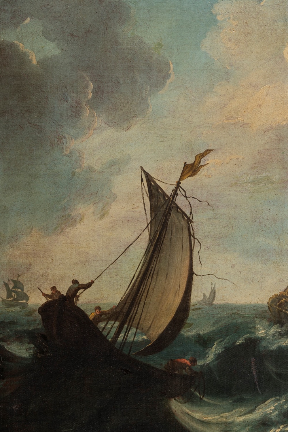 Seguace di Claude-Joseph Vernet - Marina in burrasca con velieri