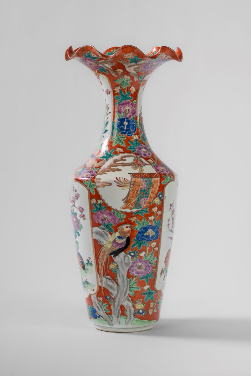 Bel vaso in porcellana a tromba con bordo polilobato, manifattura Hochzan Shin-po, Giappone, 1850-1880
