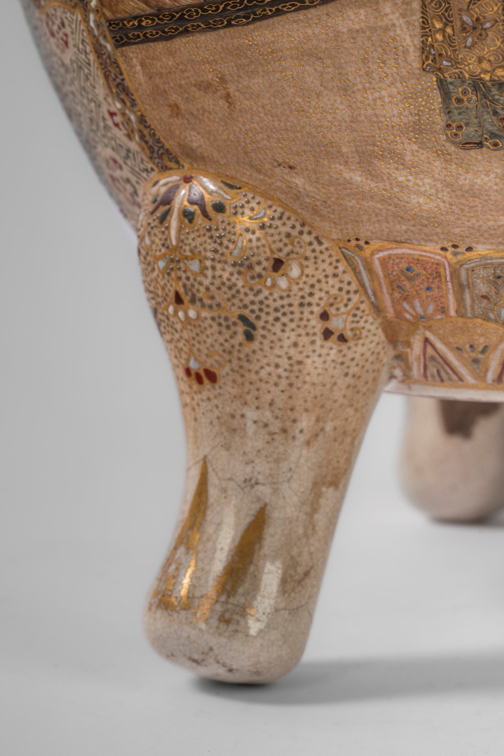 Lotto 282 | Grande incensiere in ceramica Satsuma; dipinto con scene di corte entro pannelli, il coperchio con un cane shishi, Giappone, epoca Meiji