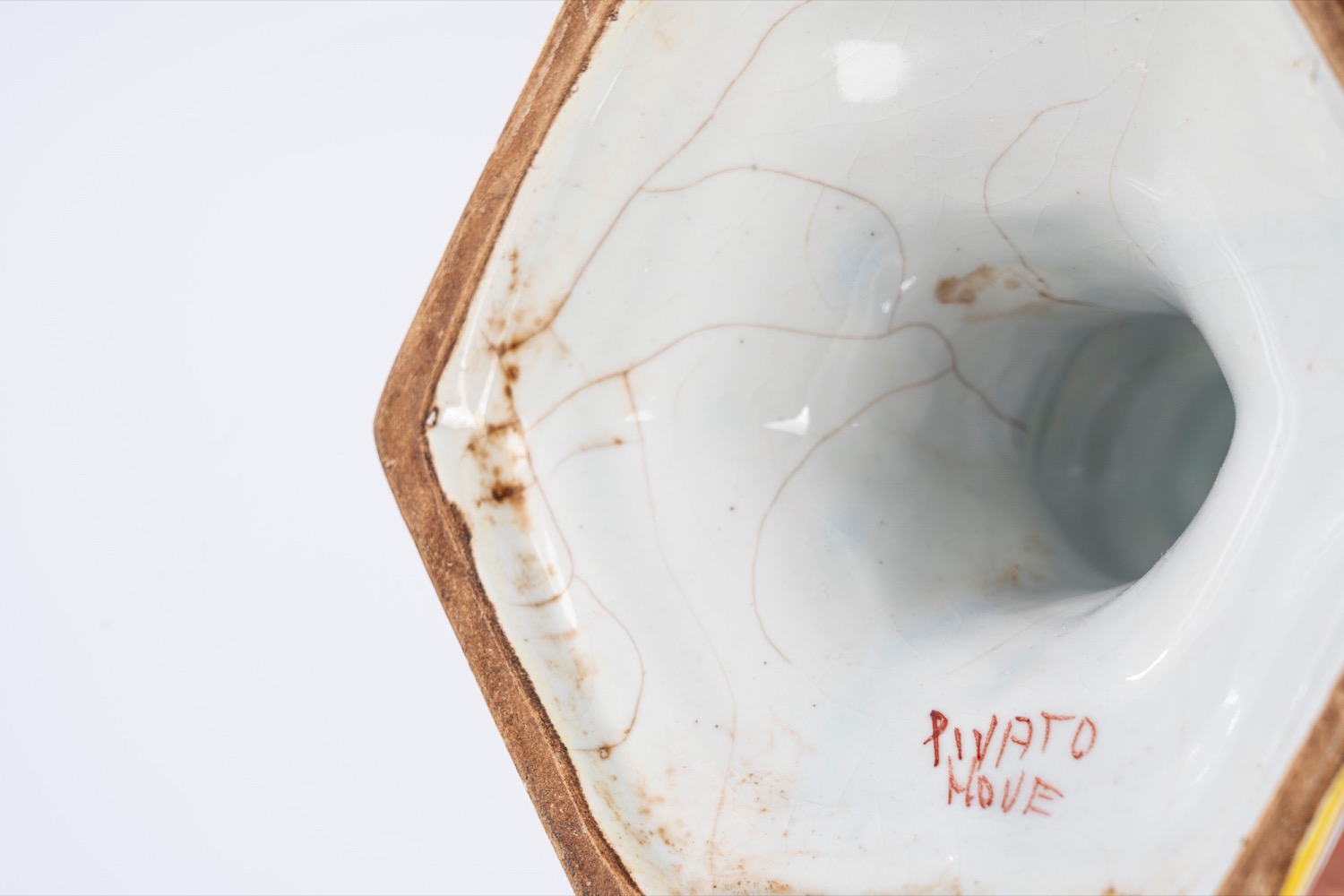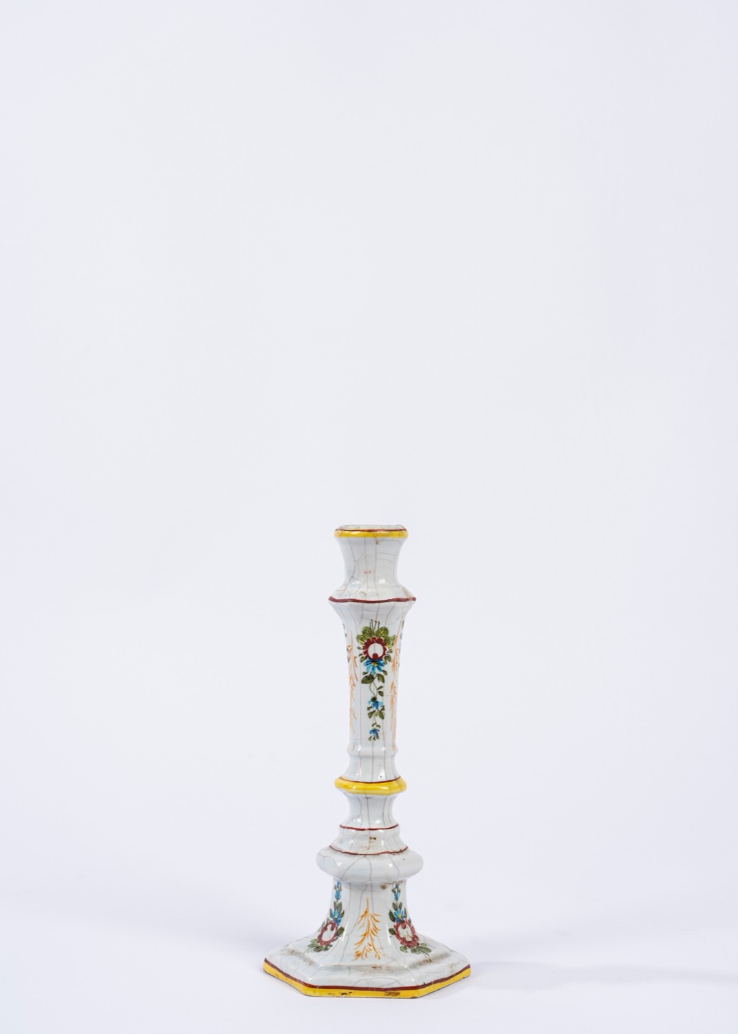 Porta candela in porcellana policroma, manifattura Pivato Nove