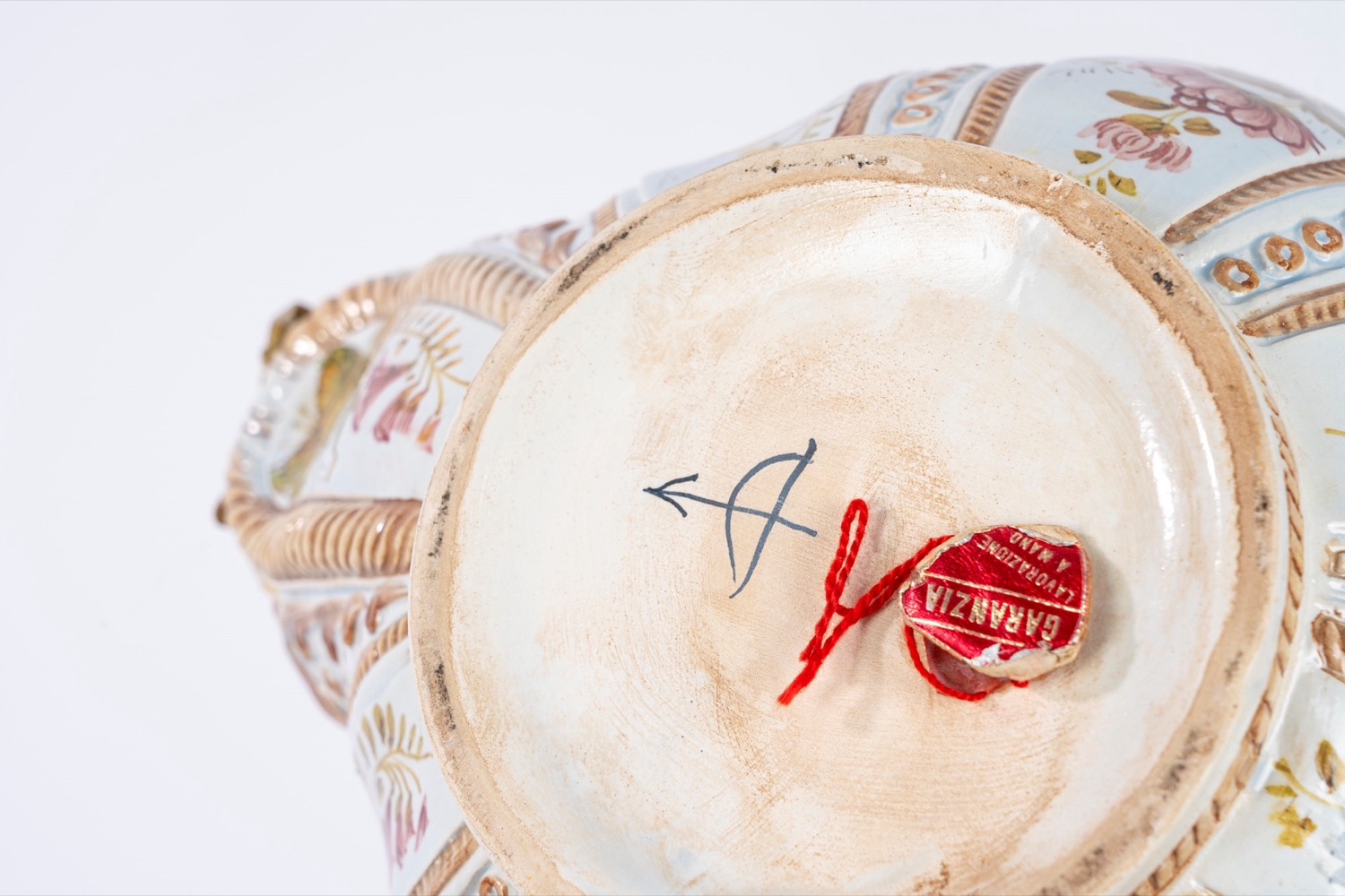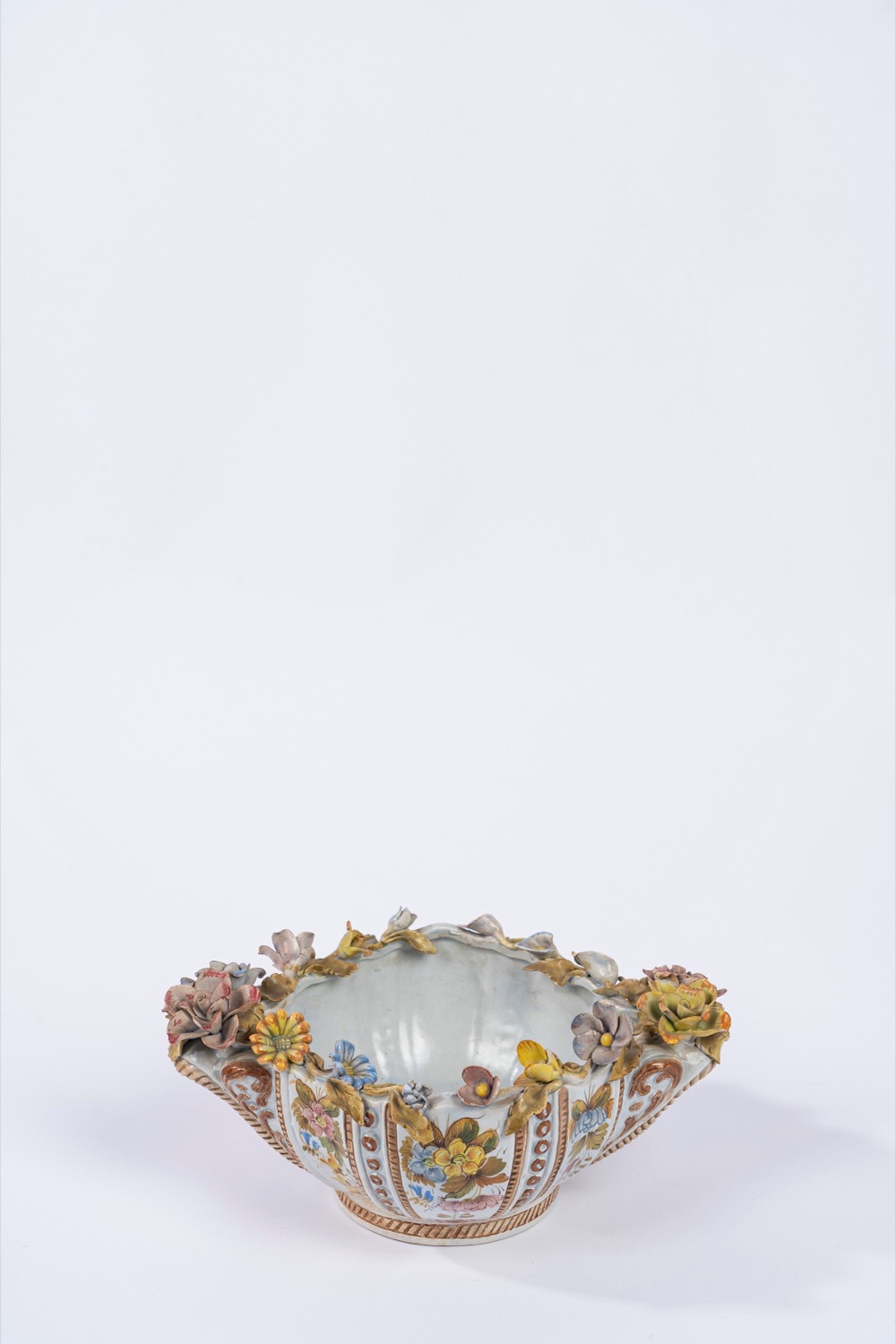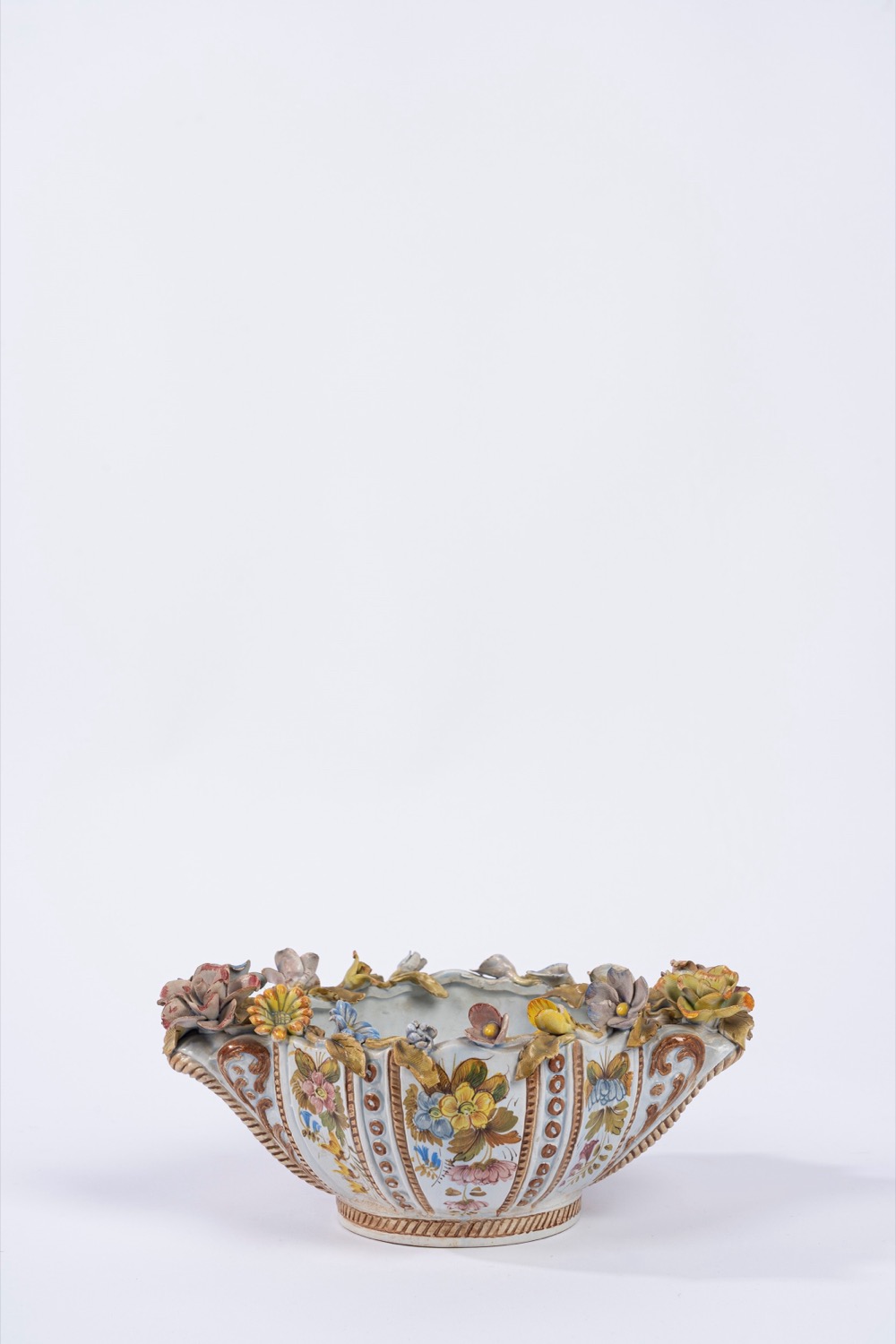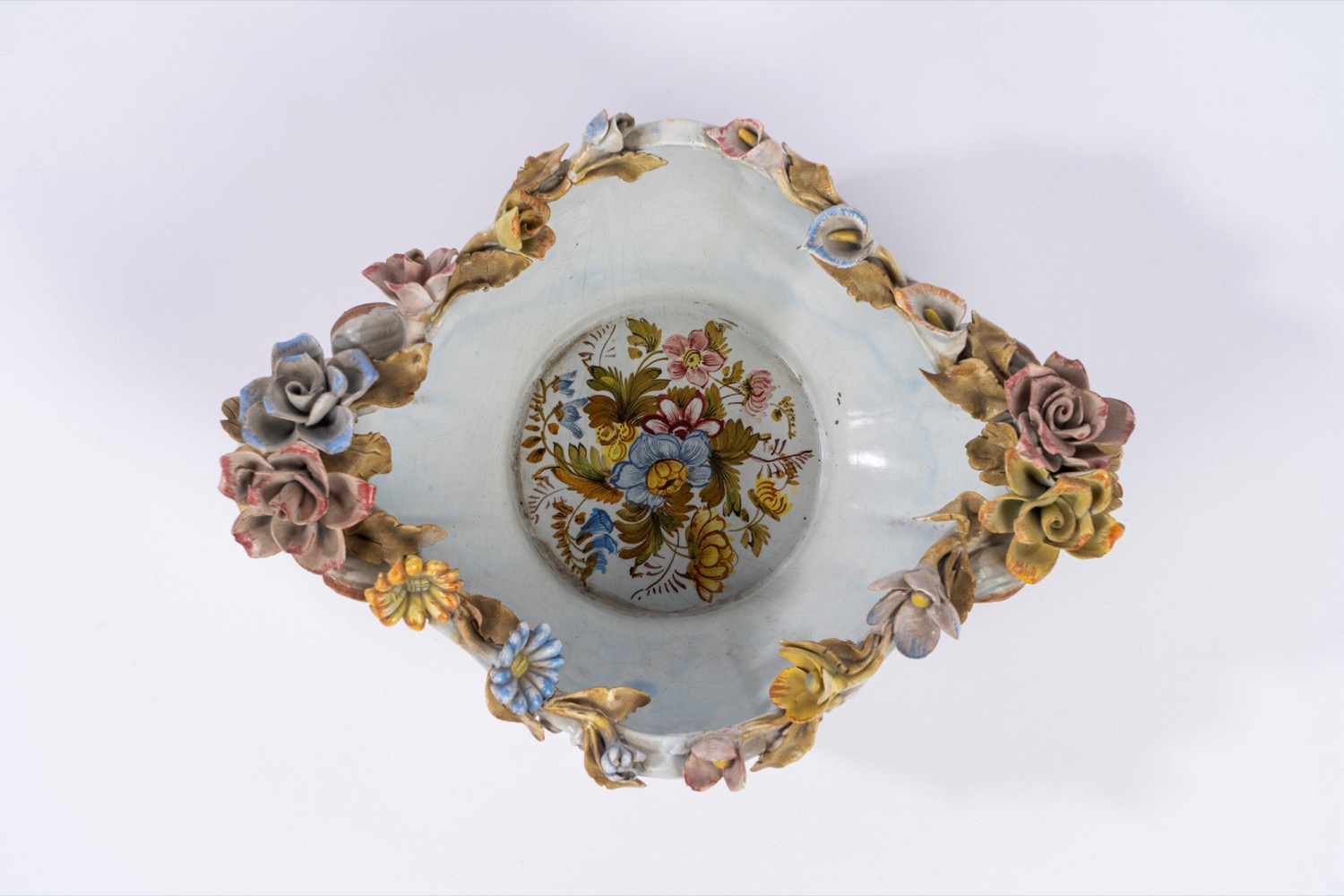 Centrotavola in ceramica policroma decorato con motivi floreali