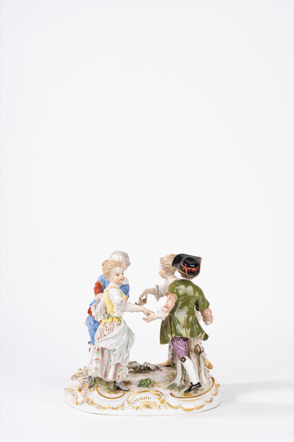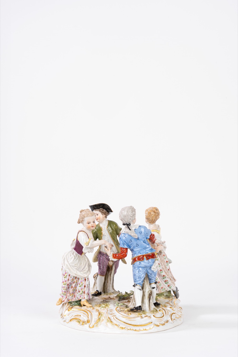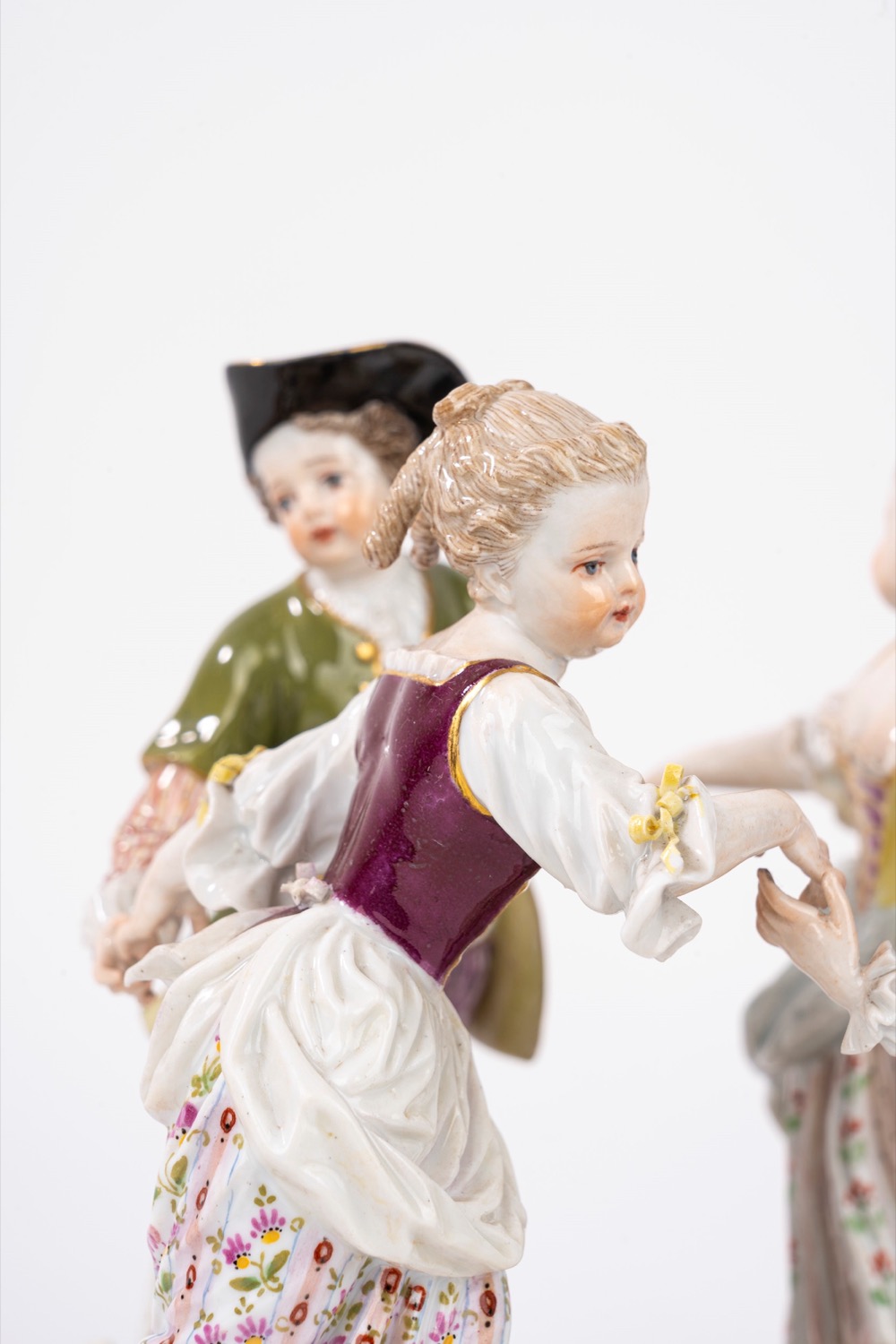 Gruppo scultoreo in porcellana policroma raffigurante girotondo di bambini, Meissen secolo XIX
