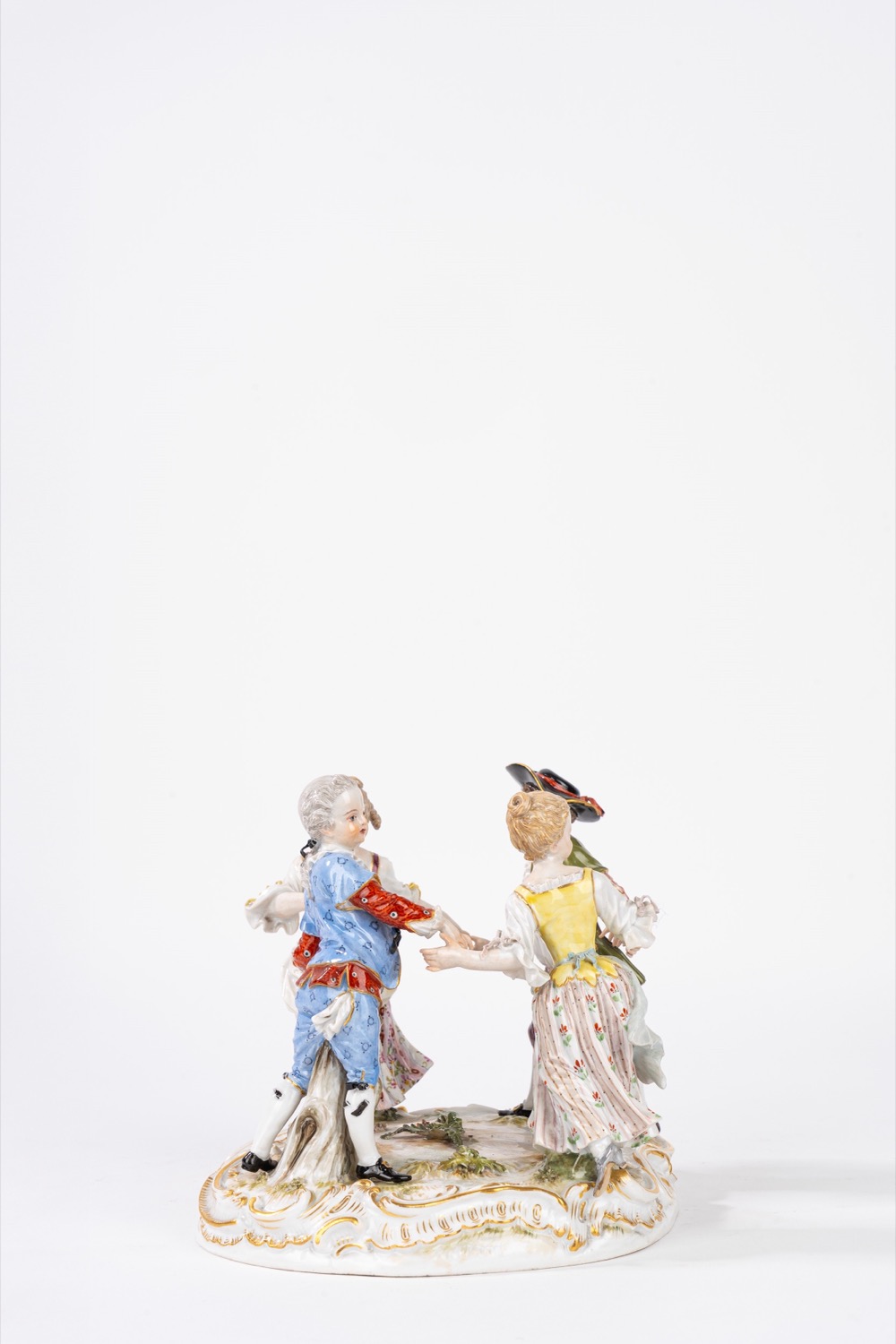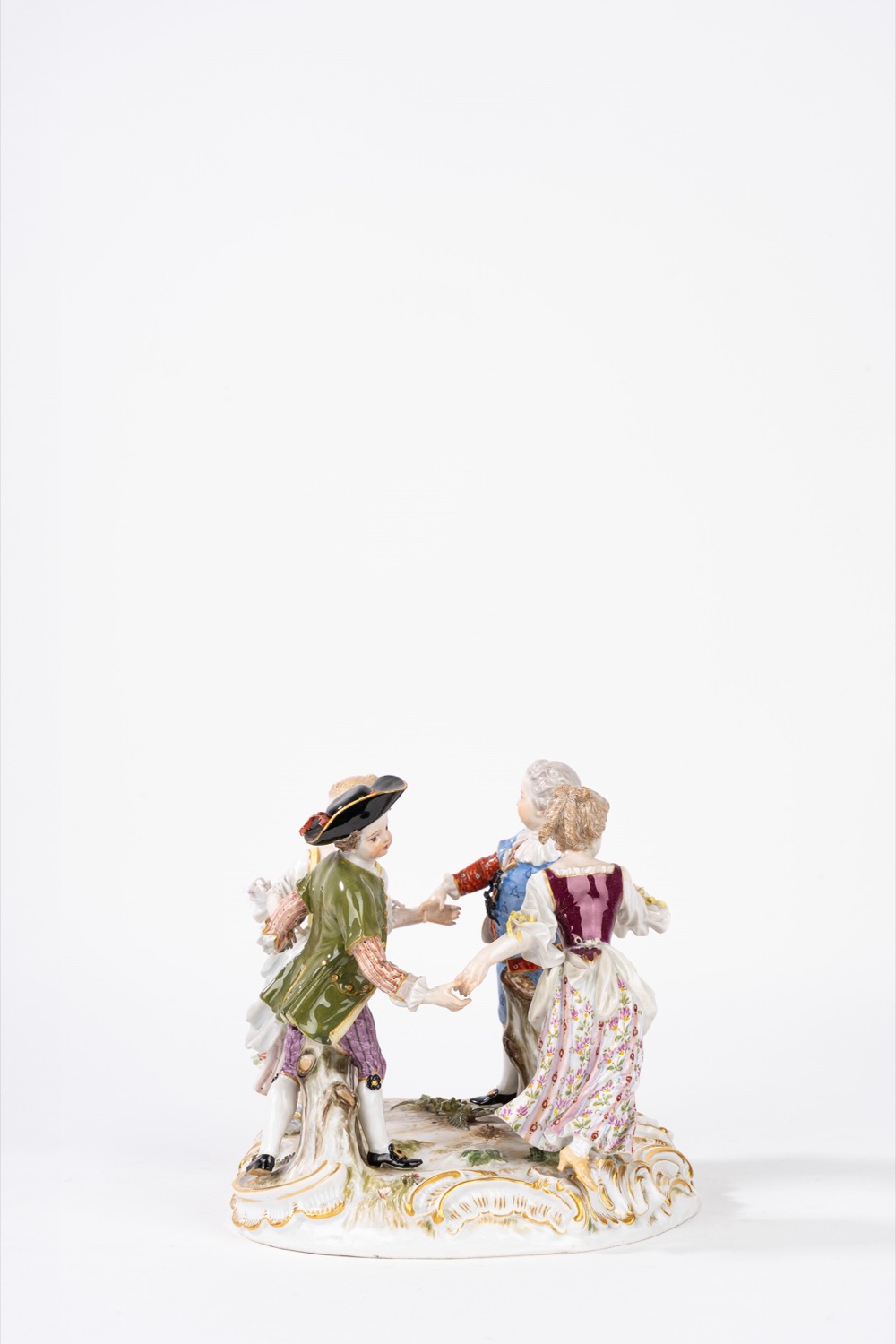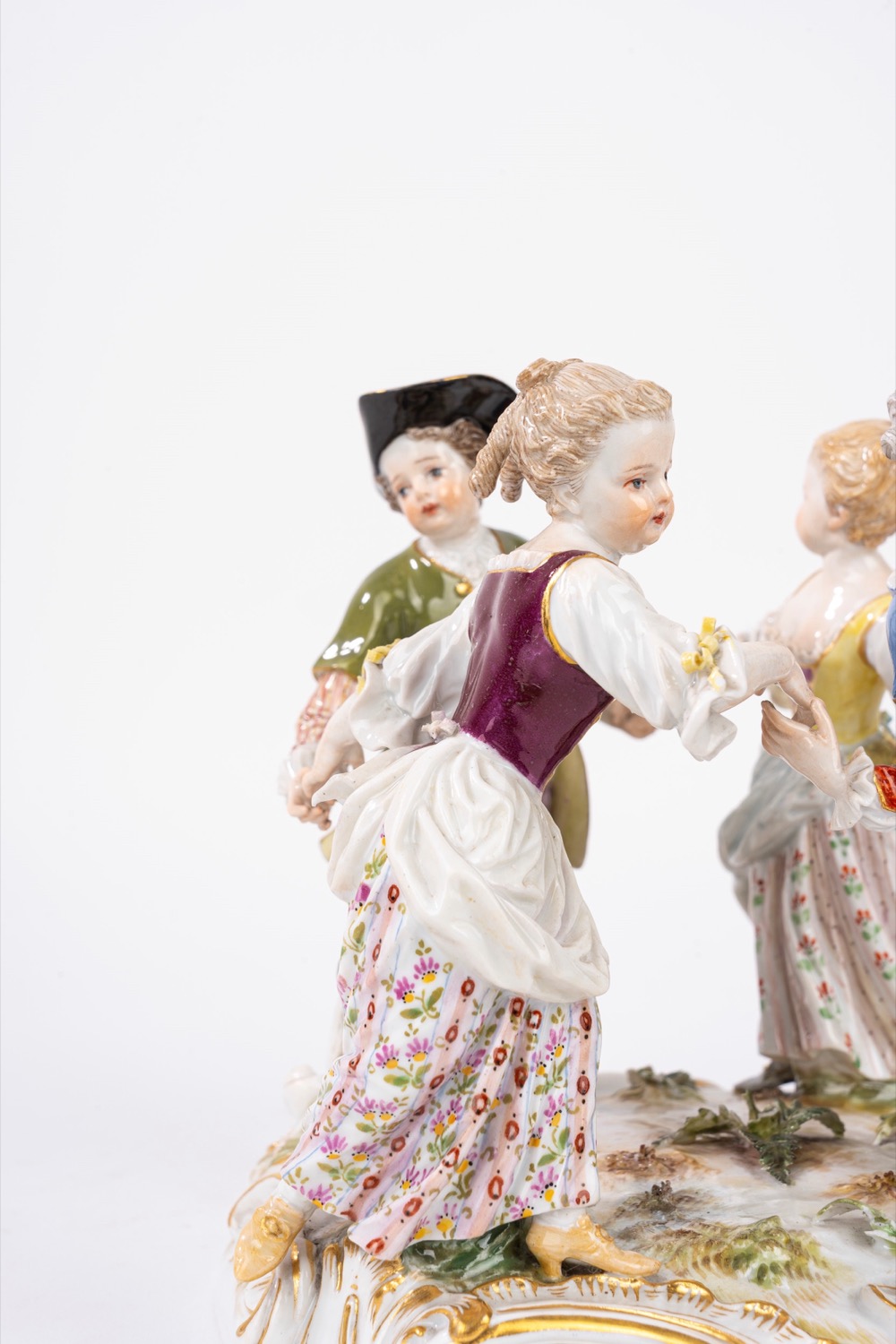 Gruppo scultoreo in porcellana policroma raffigurante girotondo di bambini, Meissen secolo XIX