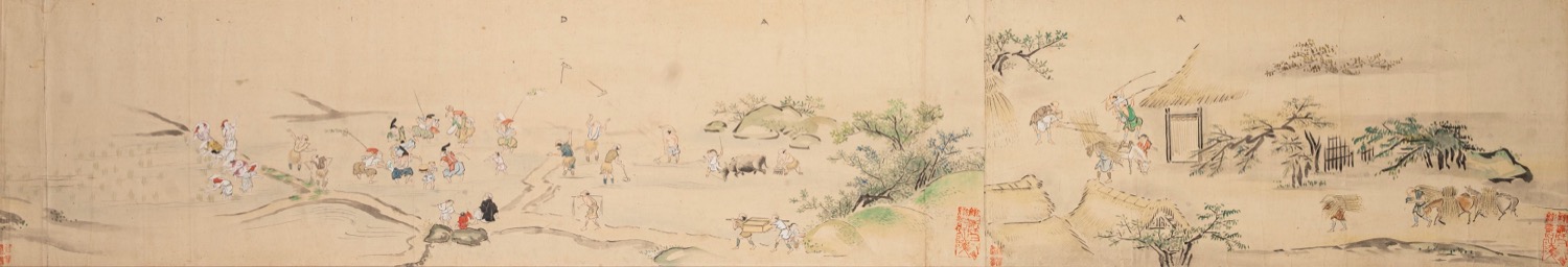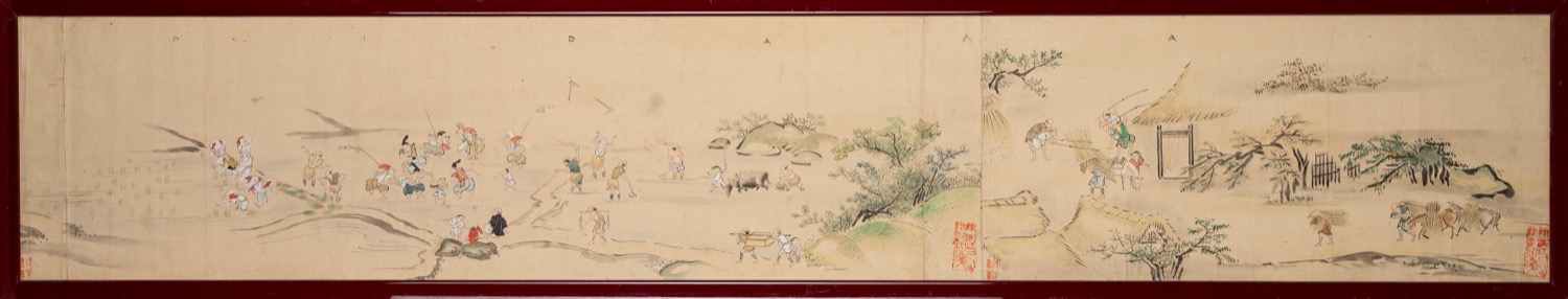 Acquerello su carta raffigurante scene di vita campestre, Giappone inizi secolo XX