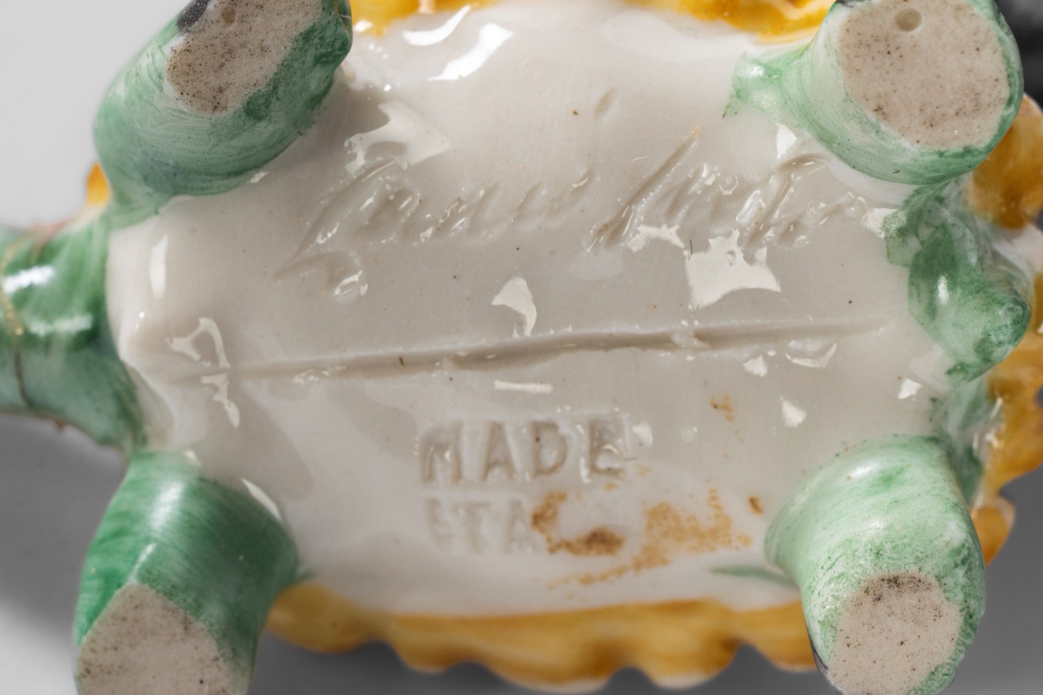 Firma incisa. Il granchio con una felatura su una chela. Firma incisa. Il granchio con una felatura su una chela.