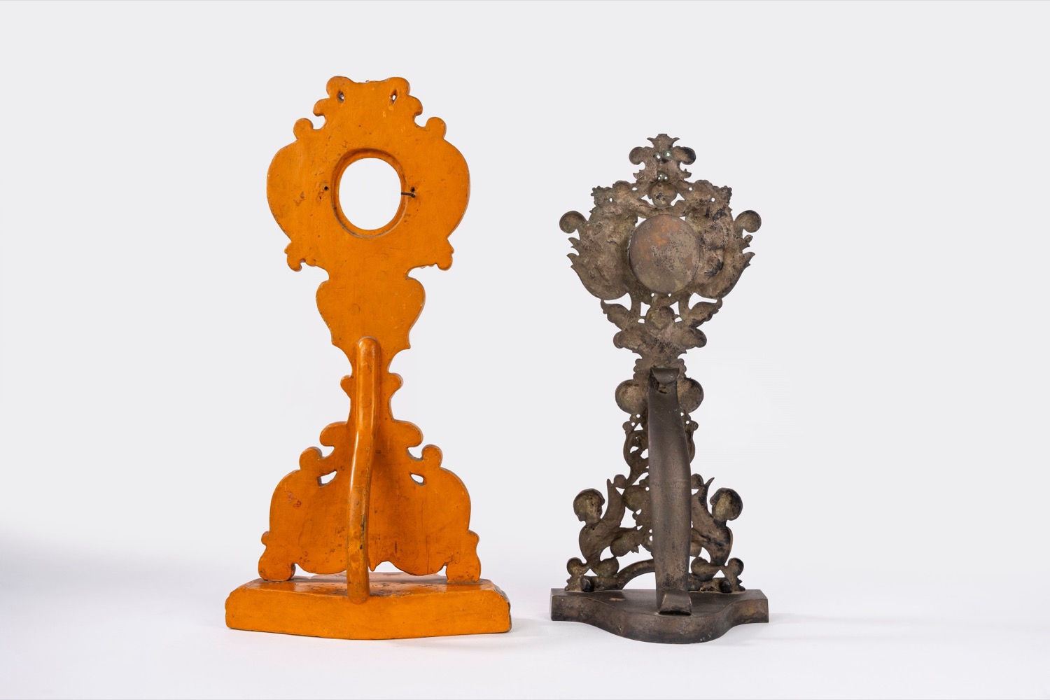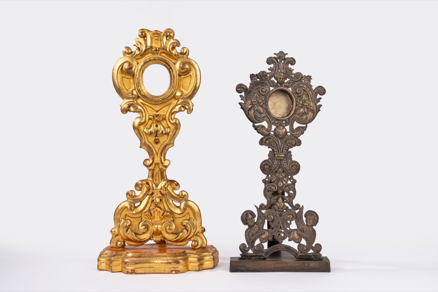 Due porta reliquie, uno in legno e uno in metallo, secoli XVIII-XIX