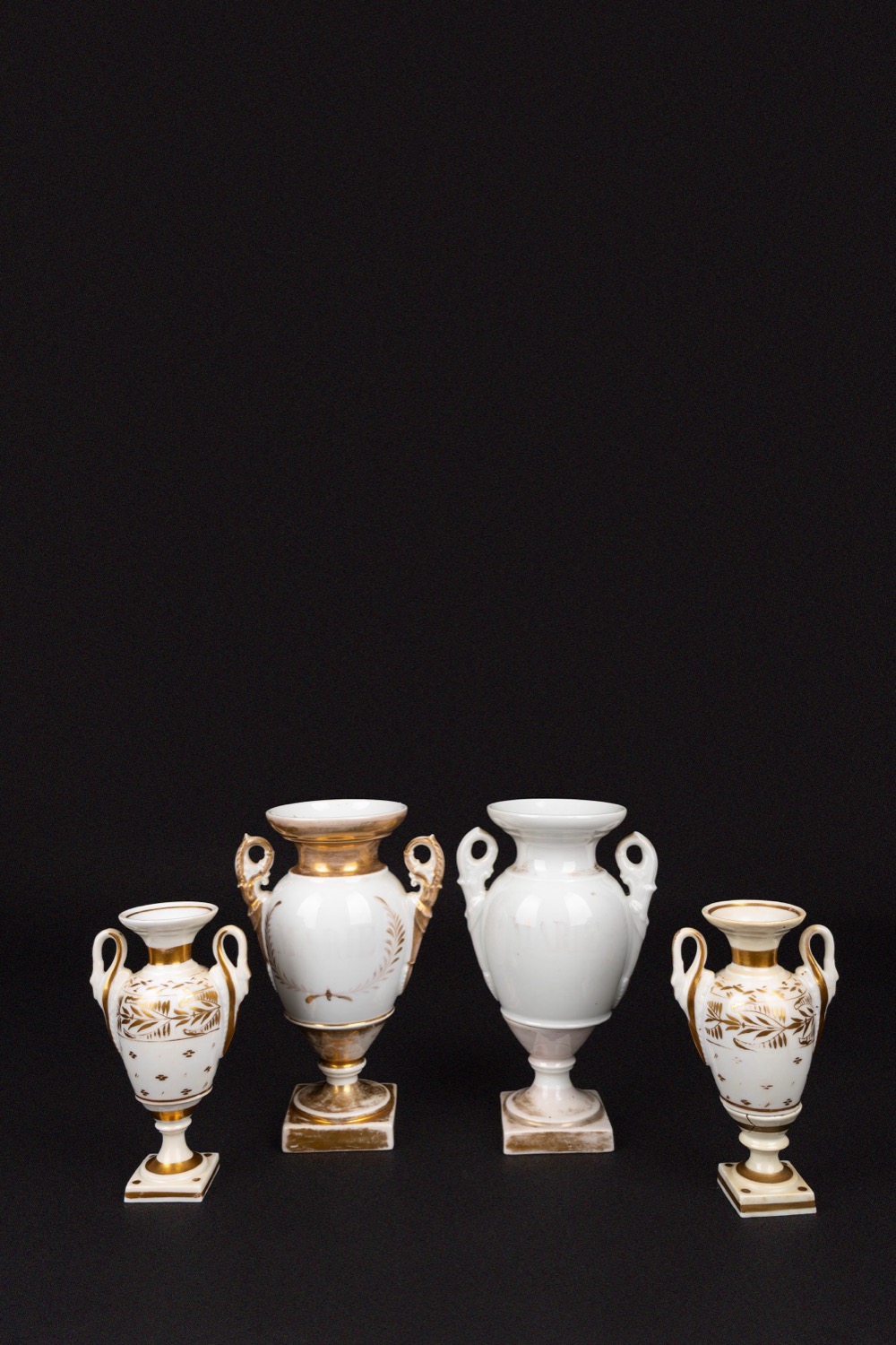 Lotto composto da due coppie di vasi in porcellana bianca e oro