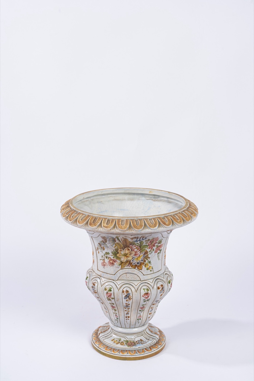 Lotto 516 | Vaso in ceramica policroma decorata con motivi floreali