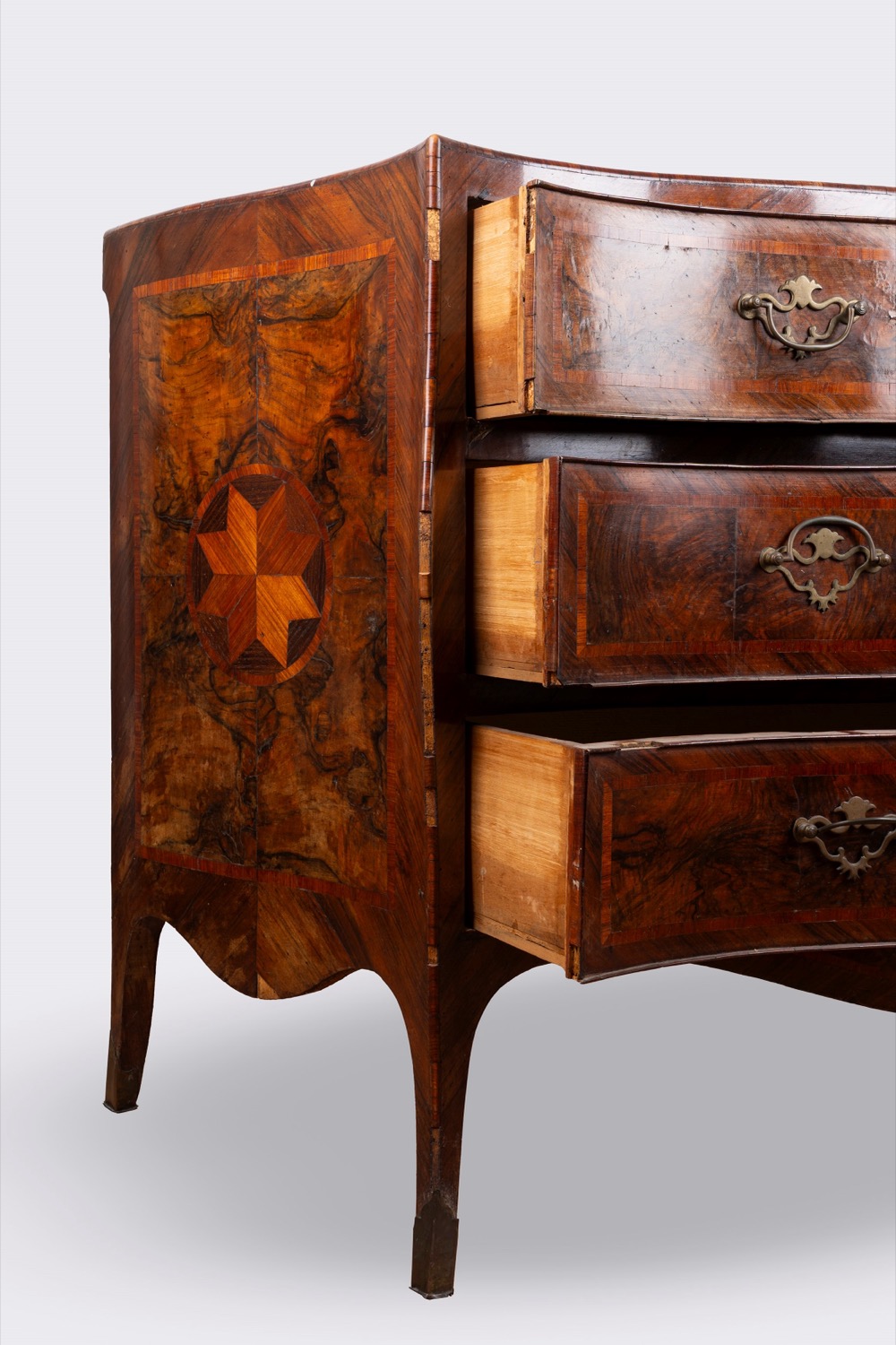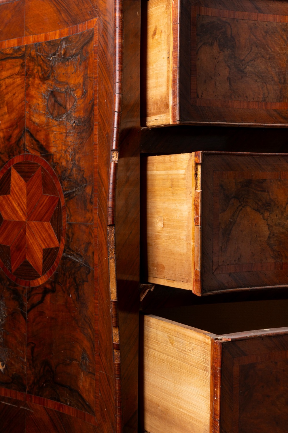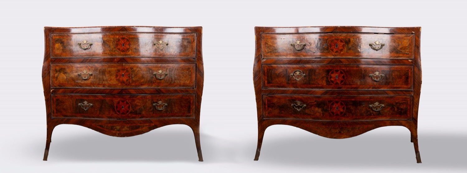 Coppia di cassettoni di forma mossa lastronati e intarsiati, Napoli, secolo XVIII