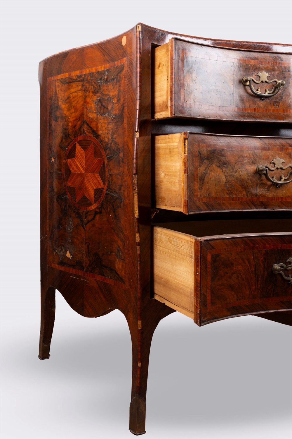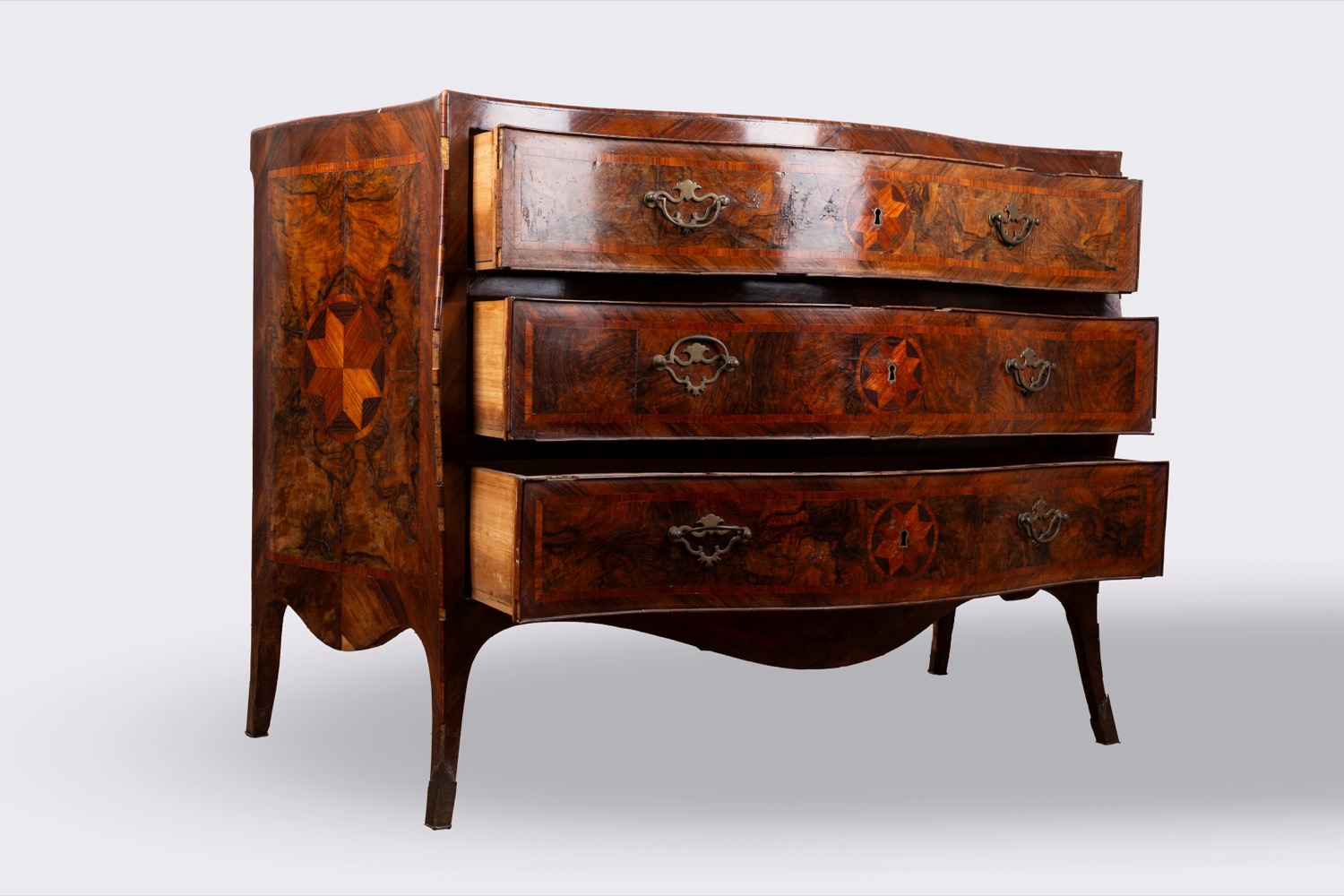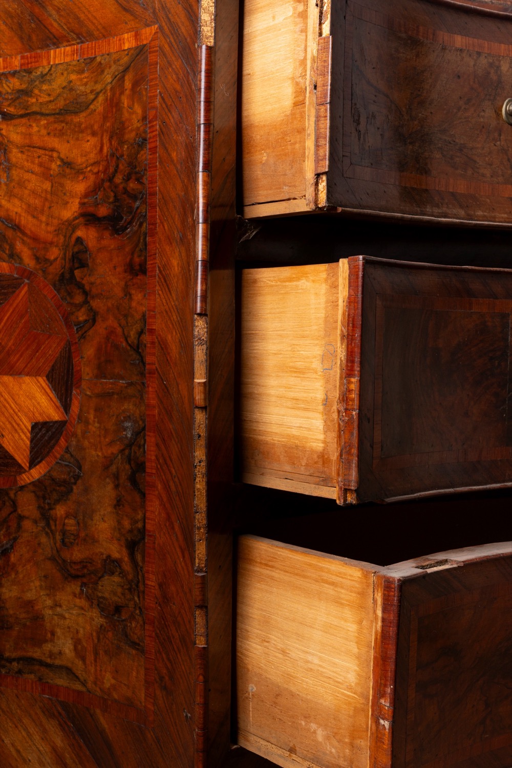 Coppia di cassettoni di forma mossa lastronati e intarsiati, Napoli, secolo XVIII
