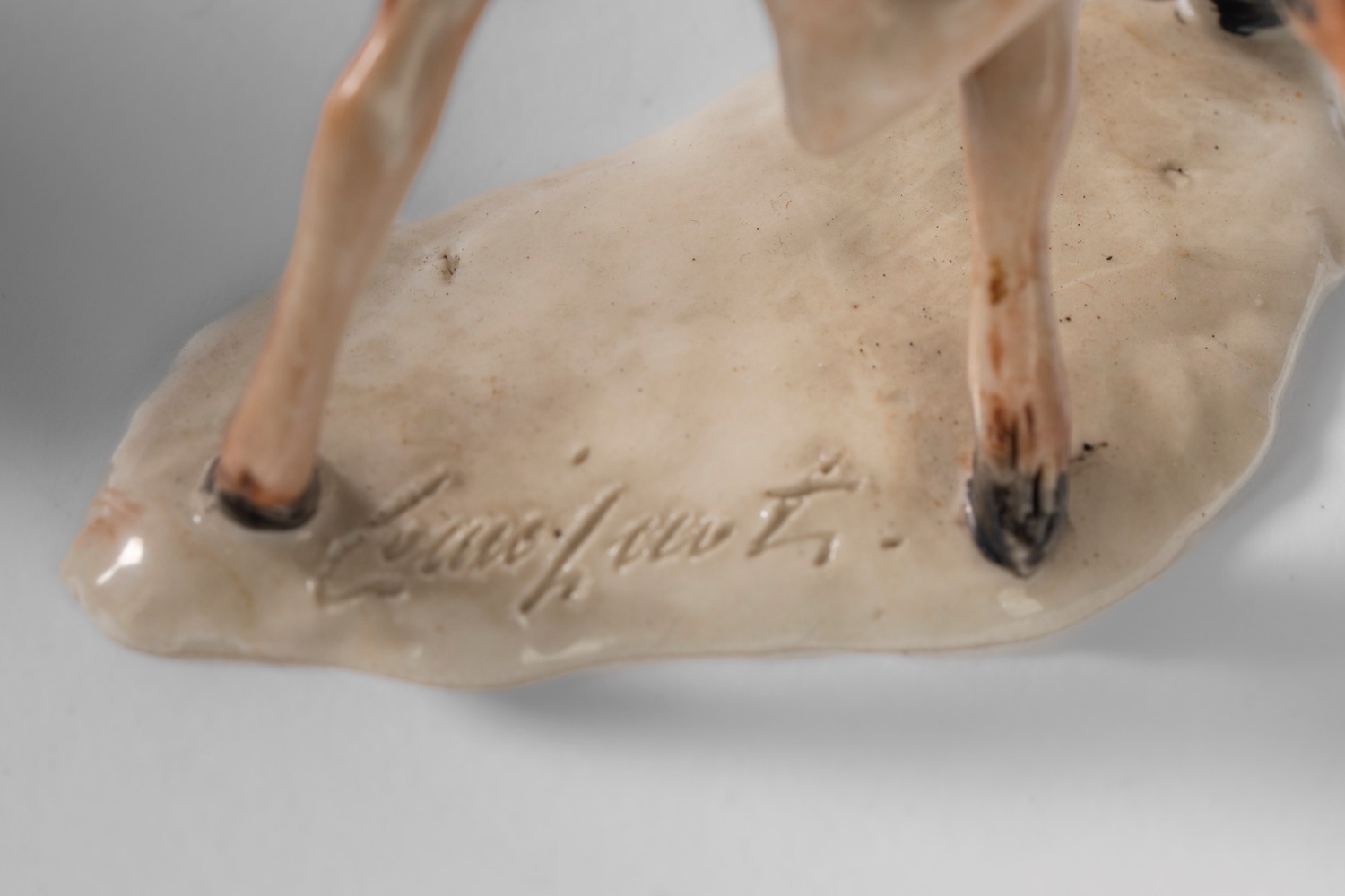 Il cerbiatto singolo con firma incisa Cacciapuoti sulla base. Entrambi i gruppi su una base di forma mossa Il cerbiatto singolo con firma incisa Cacciapuoti sulla base. Entrambi i gruppi su una base di forma mossa