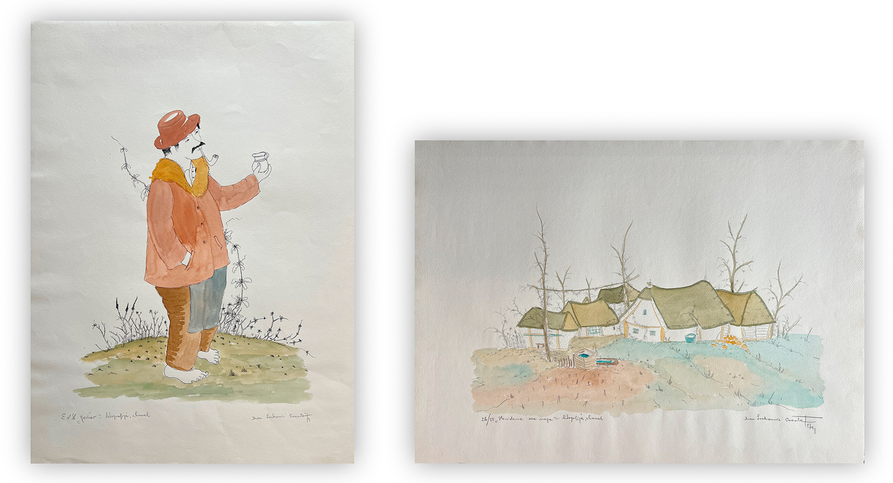AUTORE INDECIFRATO - Lotto unico di 2 litografie acquerellate: