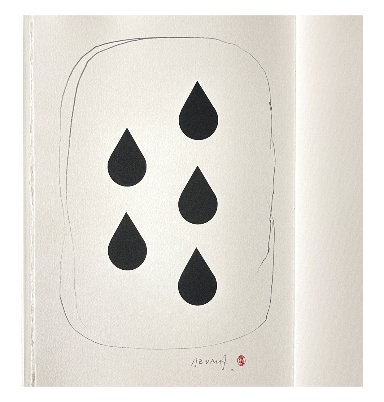 - pagina tipografica recante ideogramma 'MU' stampato tipograficamente, con sigillo personale dell'artista
