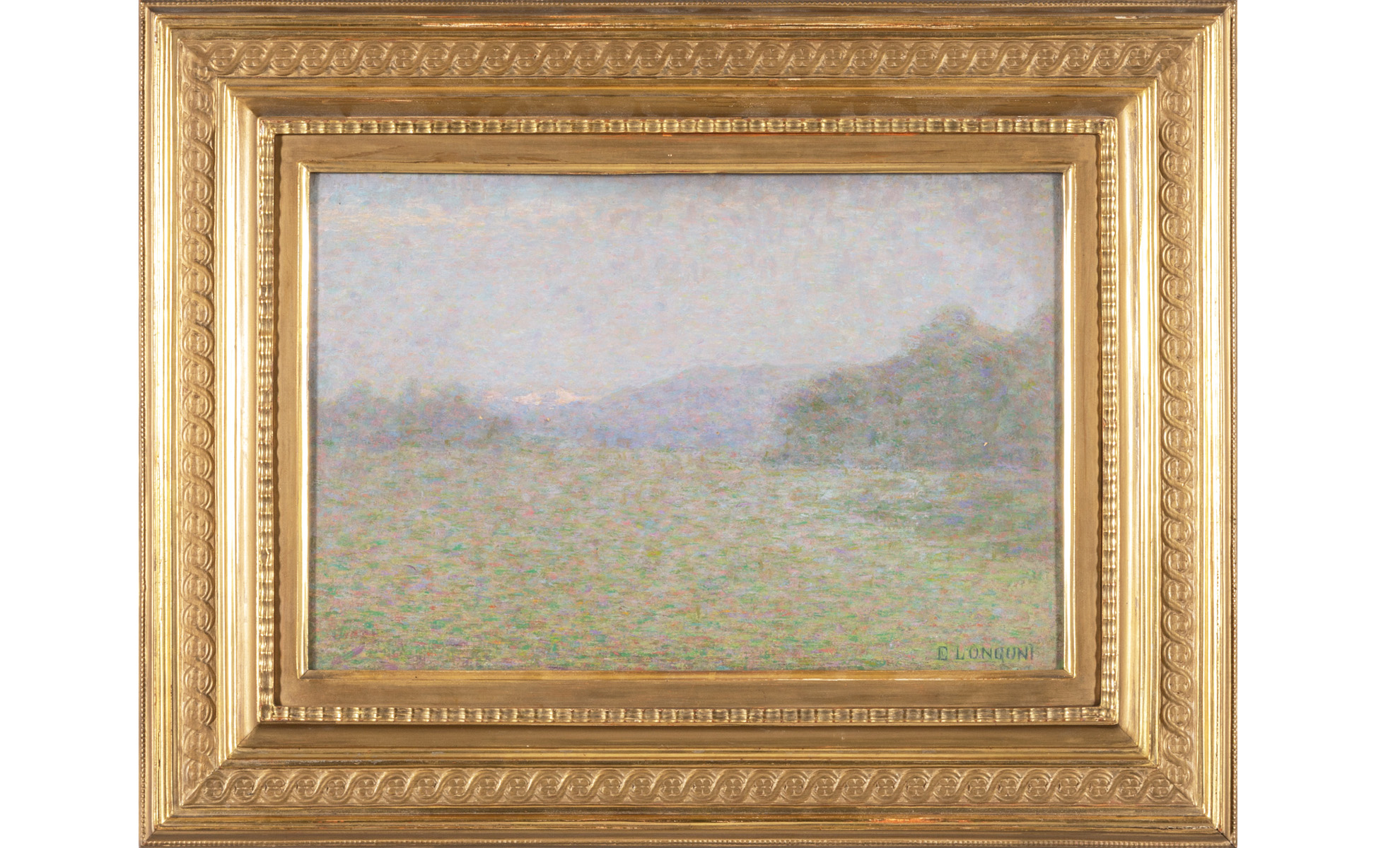 Emilio Longoni, formatosi all'Accademia di Brera, fu figura di spicco del Divisionismo italiano. Accanto alla produzione di opere di denuncia sociale, che gli valsero riconoscimento critico sin dagli esordi, sviluppò una parallela ricerca paesaggistica in cui applicò i principi della divisione del colore con risultati di grande liricismo. I suoi paesaggi, spesso ambientati nelle valli bergamasche, testimoniano una profonda sensibilità per i fenomeni luminosi e atmosferici, interpretati attraverso una tecnica meticolosa che anticipa le ricerche novecentesche sulla luce.
