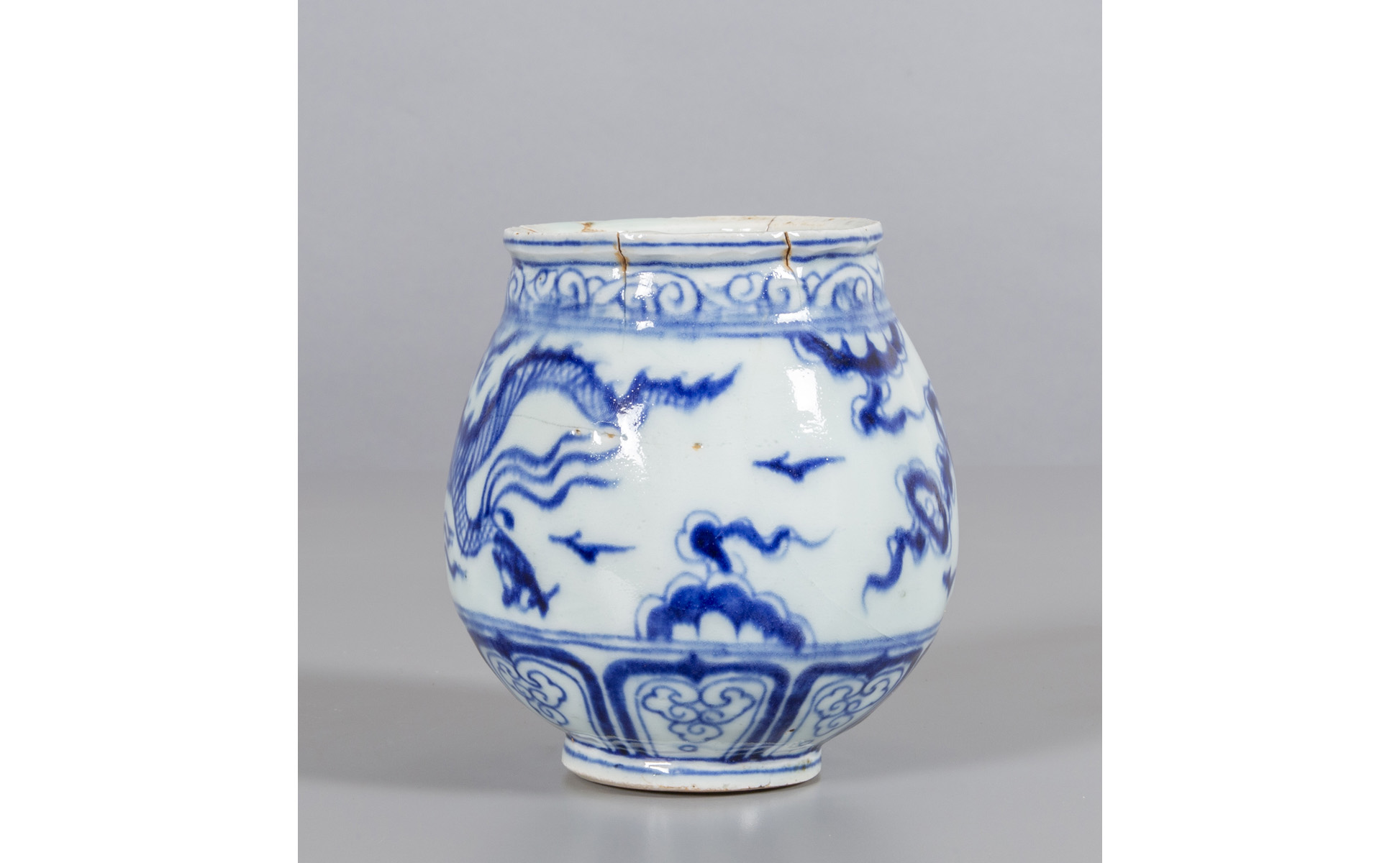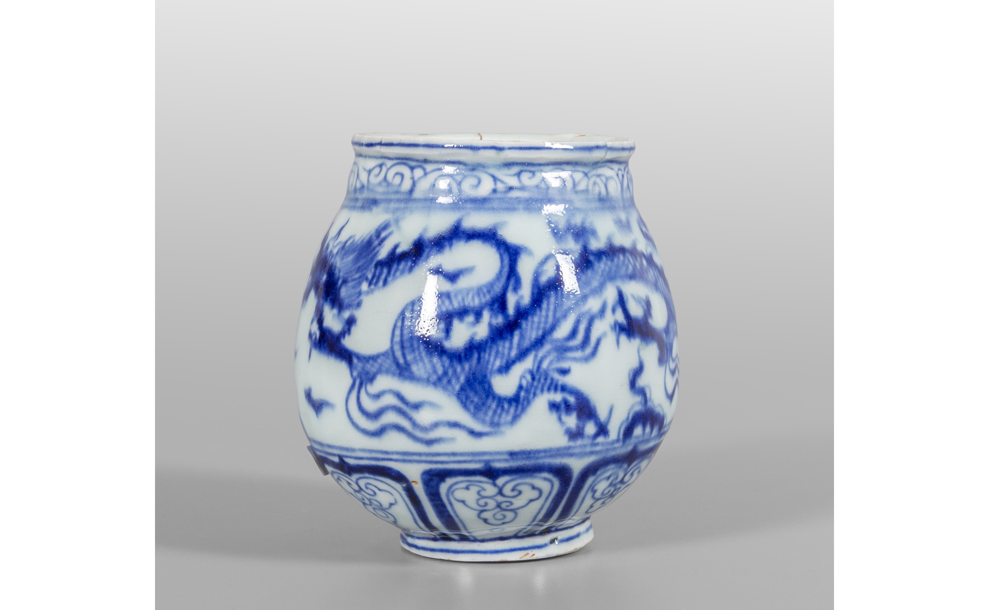 Vaso in porcellana bianca e blu decorato con drago Cina sec.XVIII