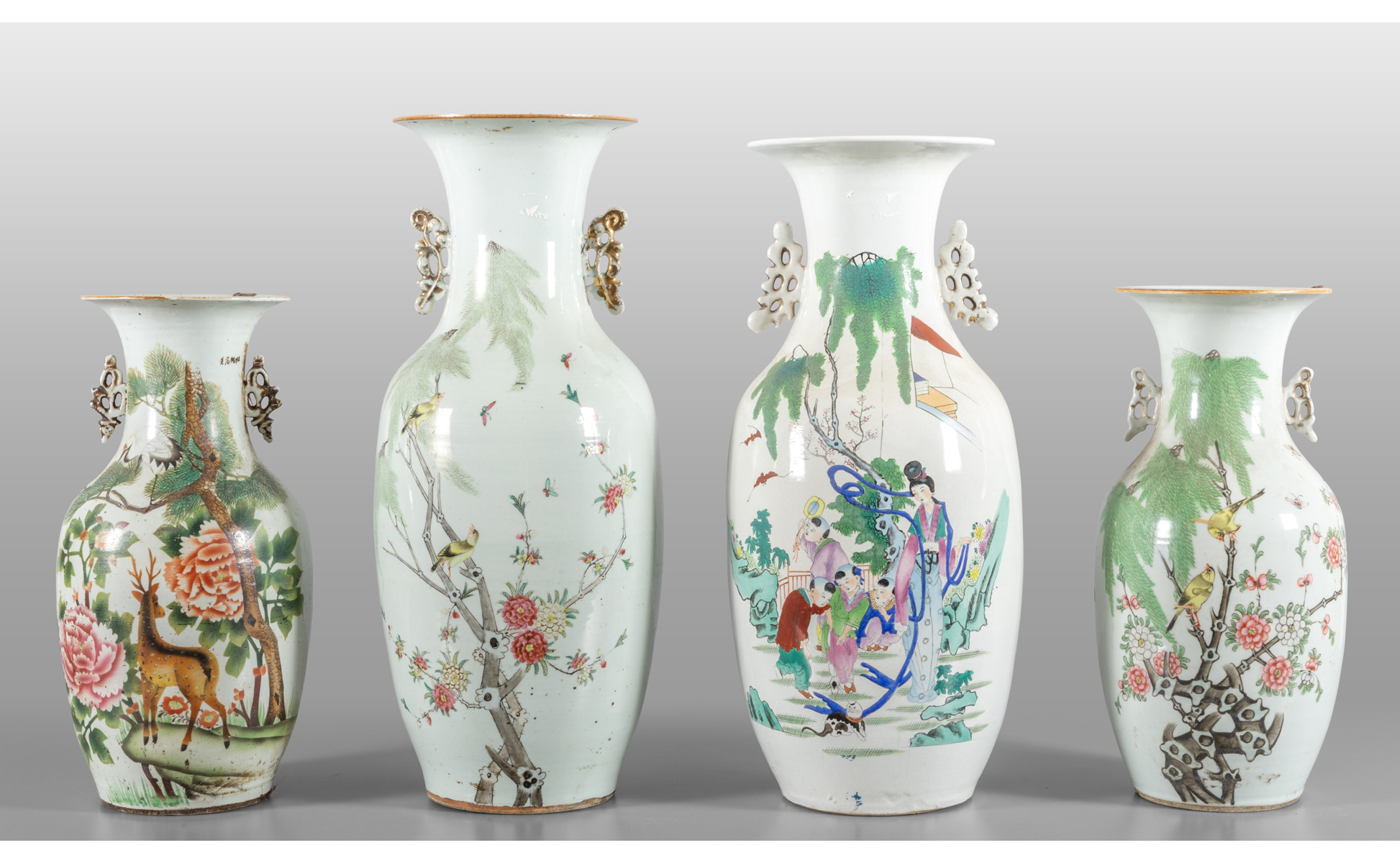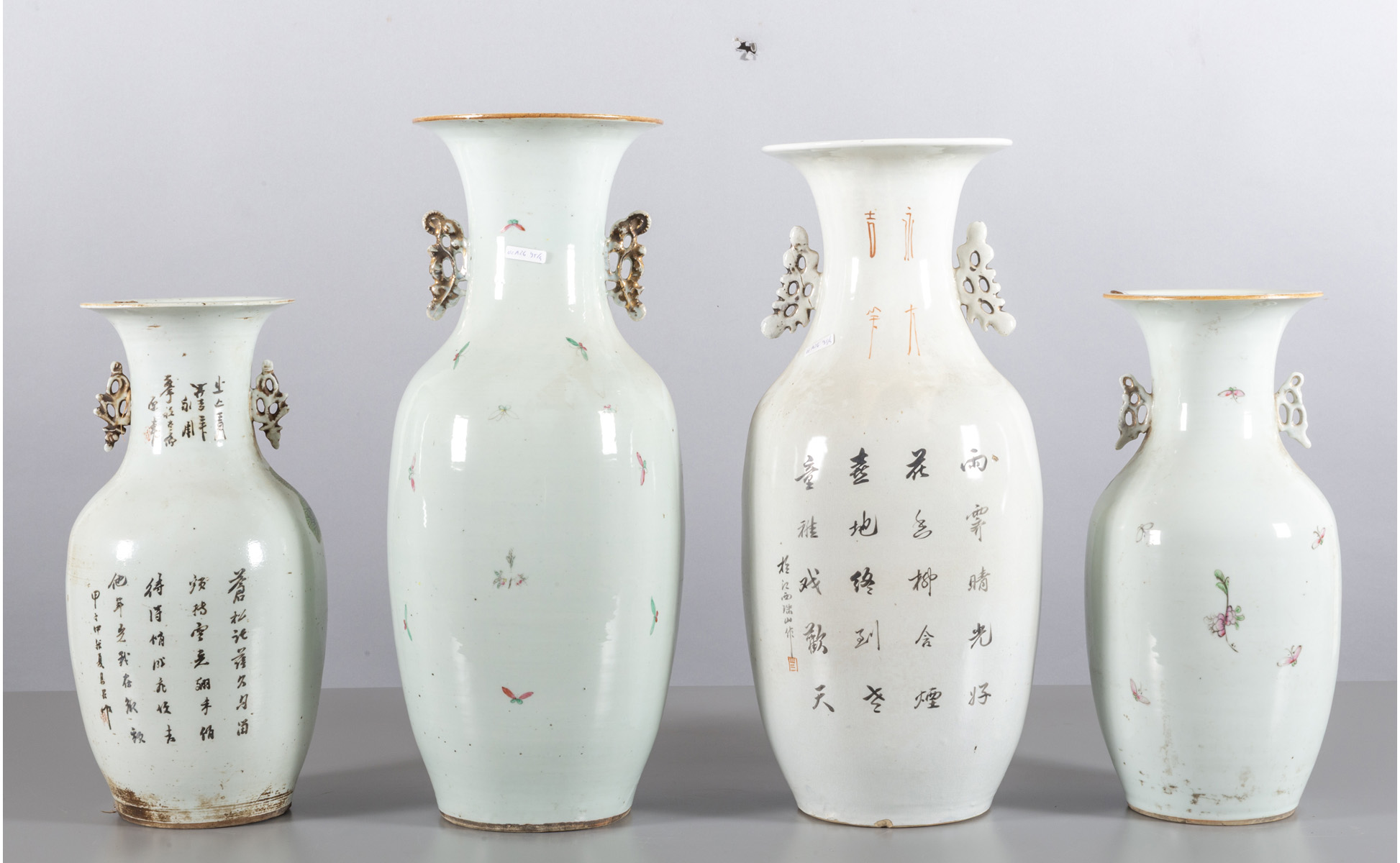 Quattro vasi in porcellana policroma con manici Cina sec.XX