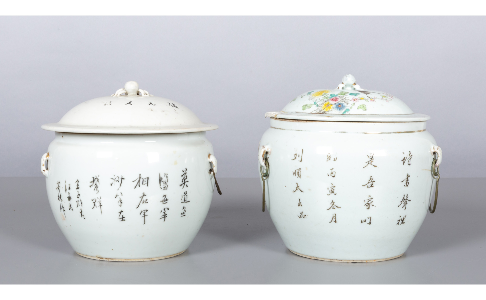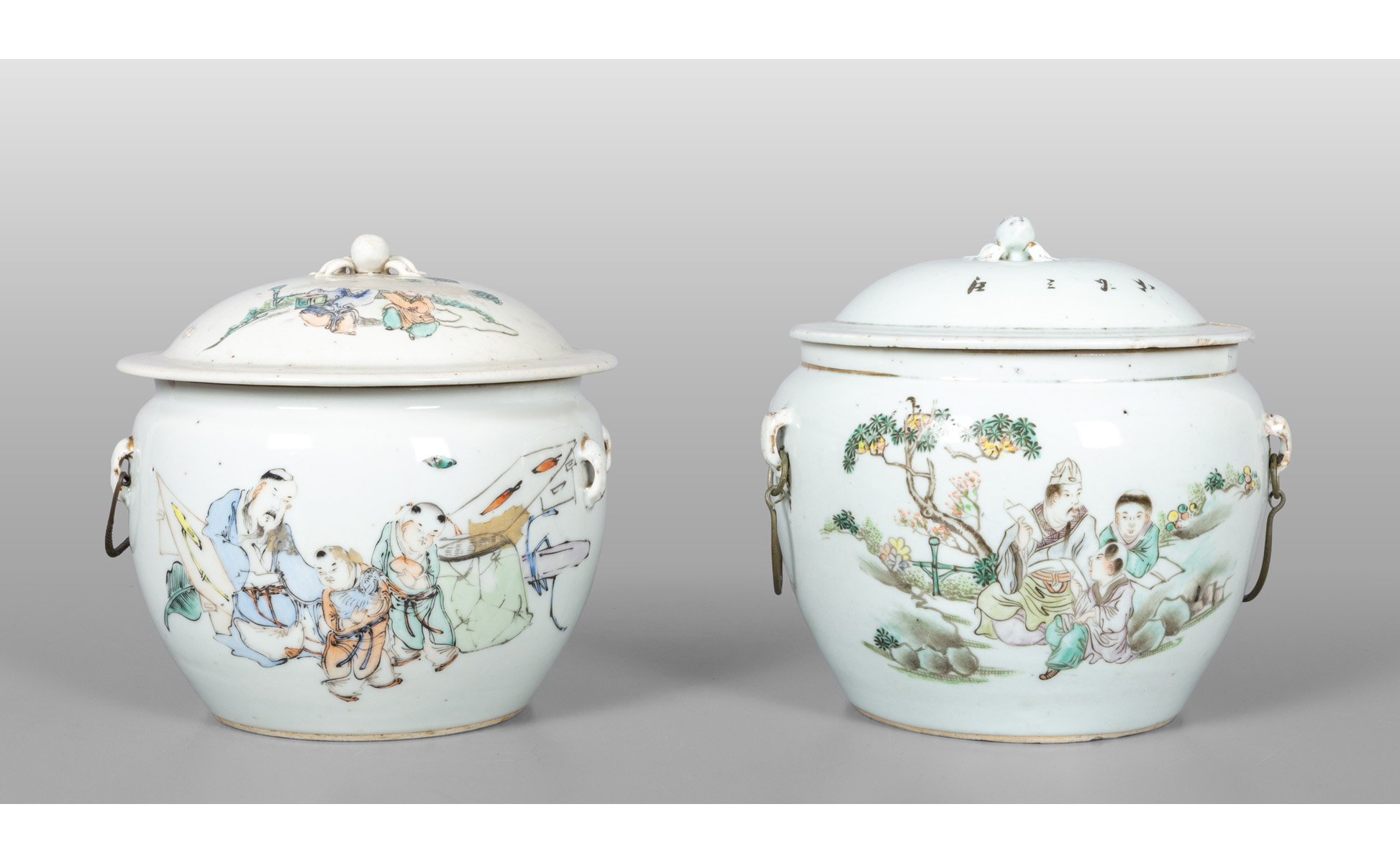 Coppia di cachepots con coperchio in porcellana policroma Cina inizi sec.XX
