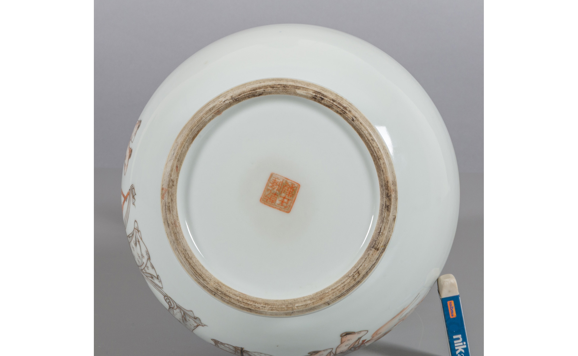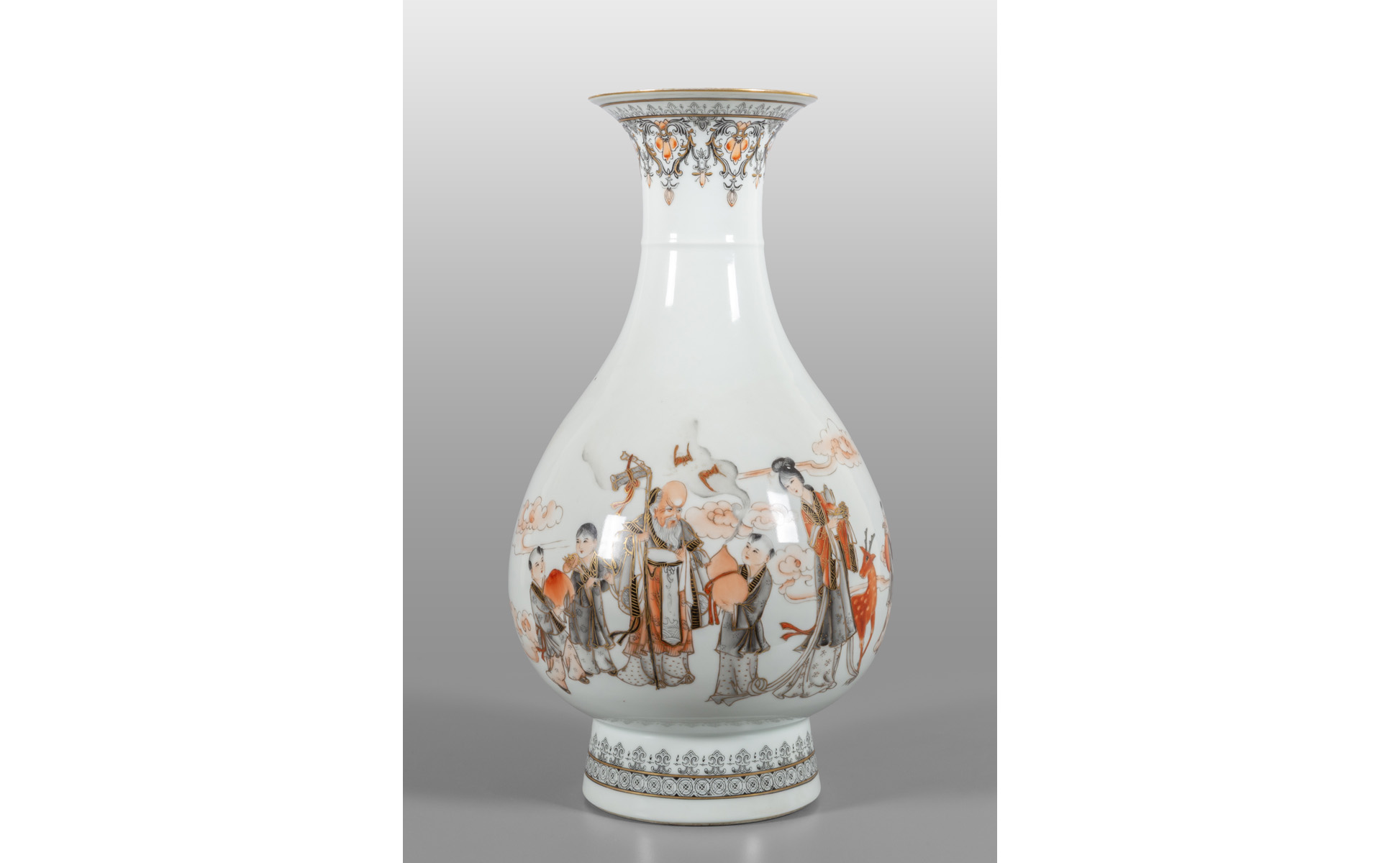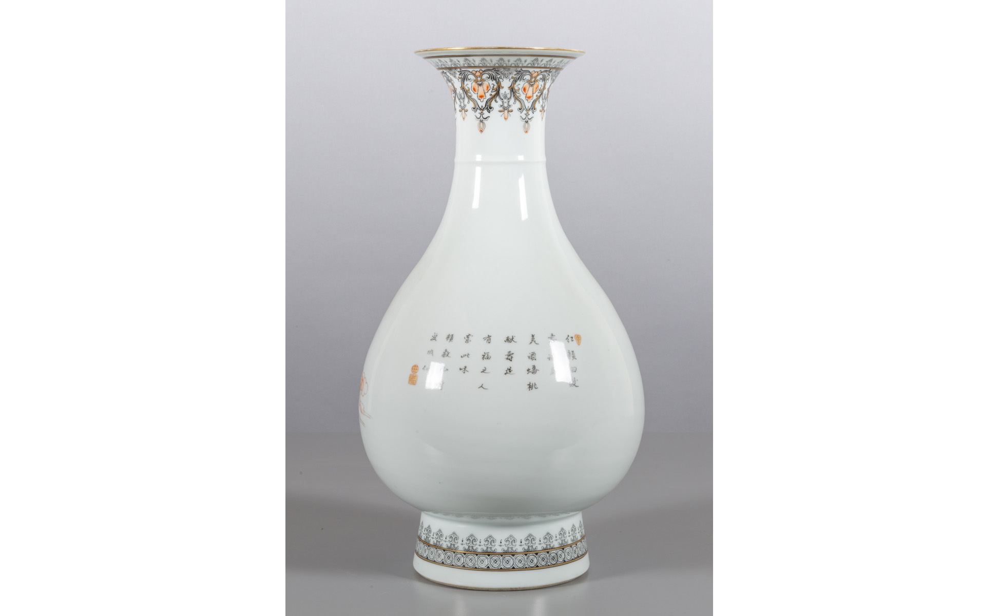 Vaso a collo stretto in porcellana decorato con saggio e fanciulli in ossido di ferro marcato alla base Cina I metà sec.XIX