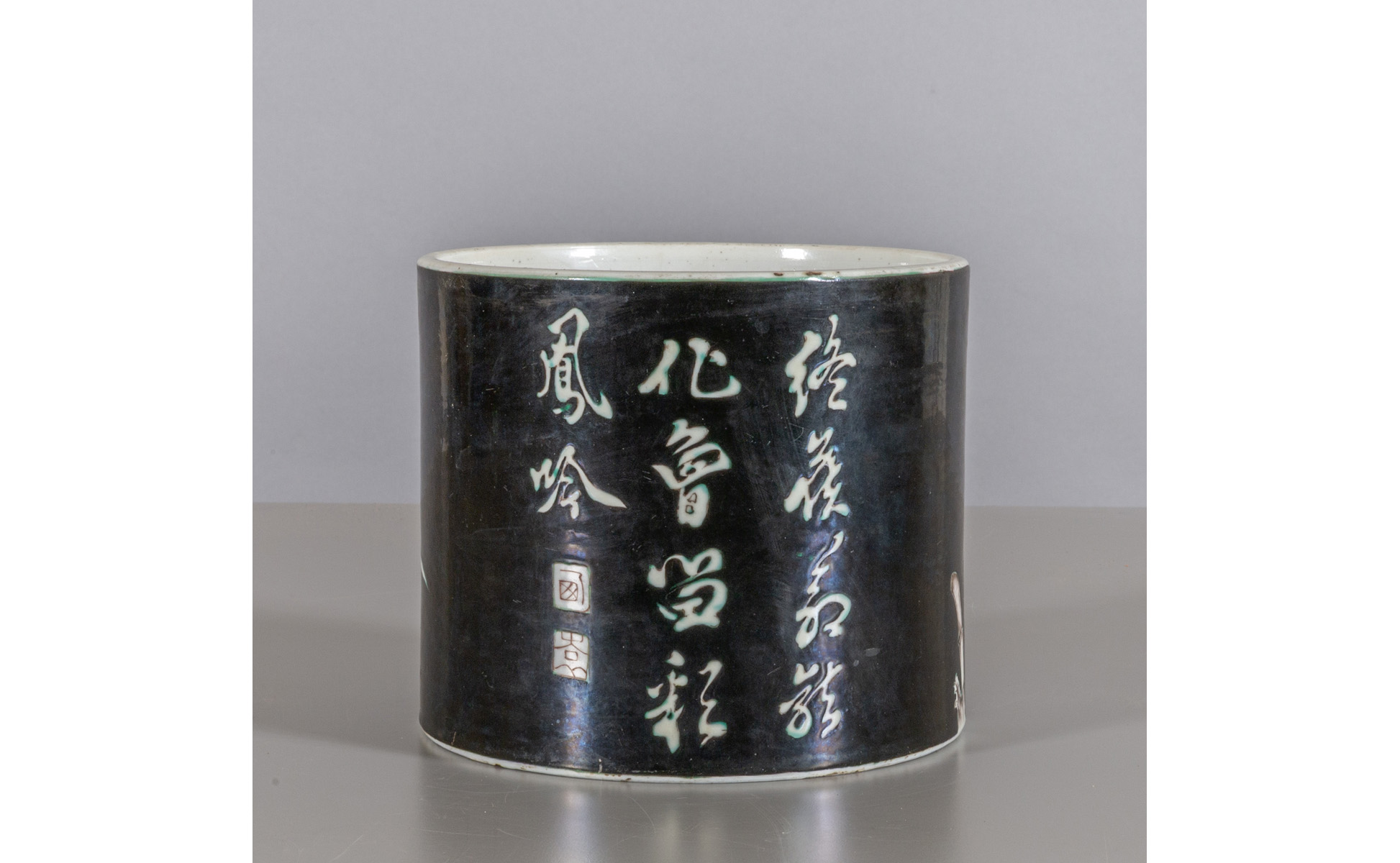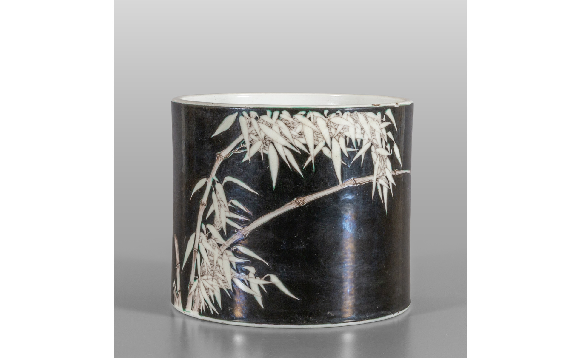 Lavapennelli in porcellana famiglia Nera decorato con bambù ed iscrizioni