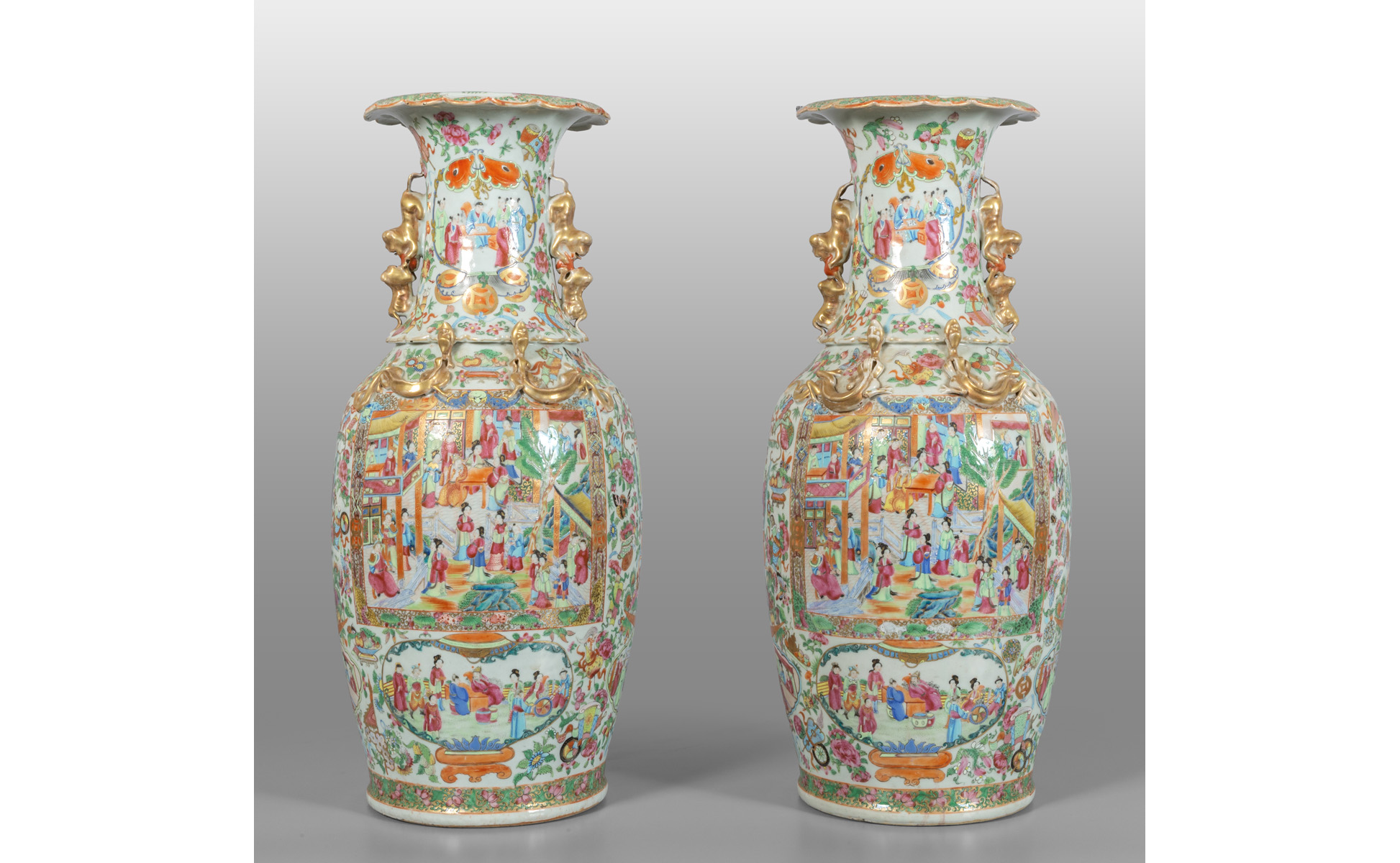 Coppia di vasi in porcellana famiglia Rosa decorati con scena di vita cinese Canton sec.XIX