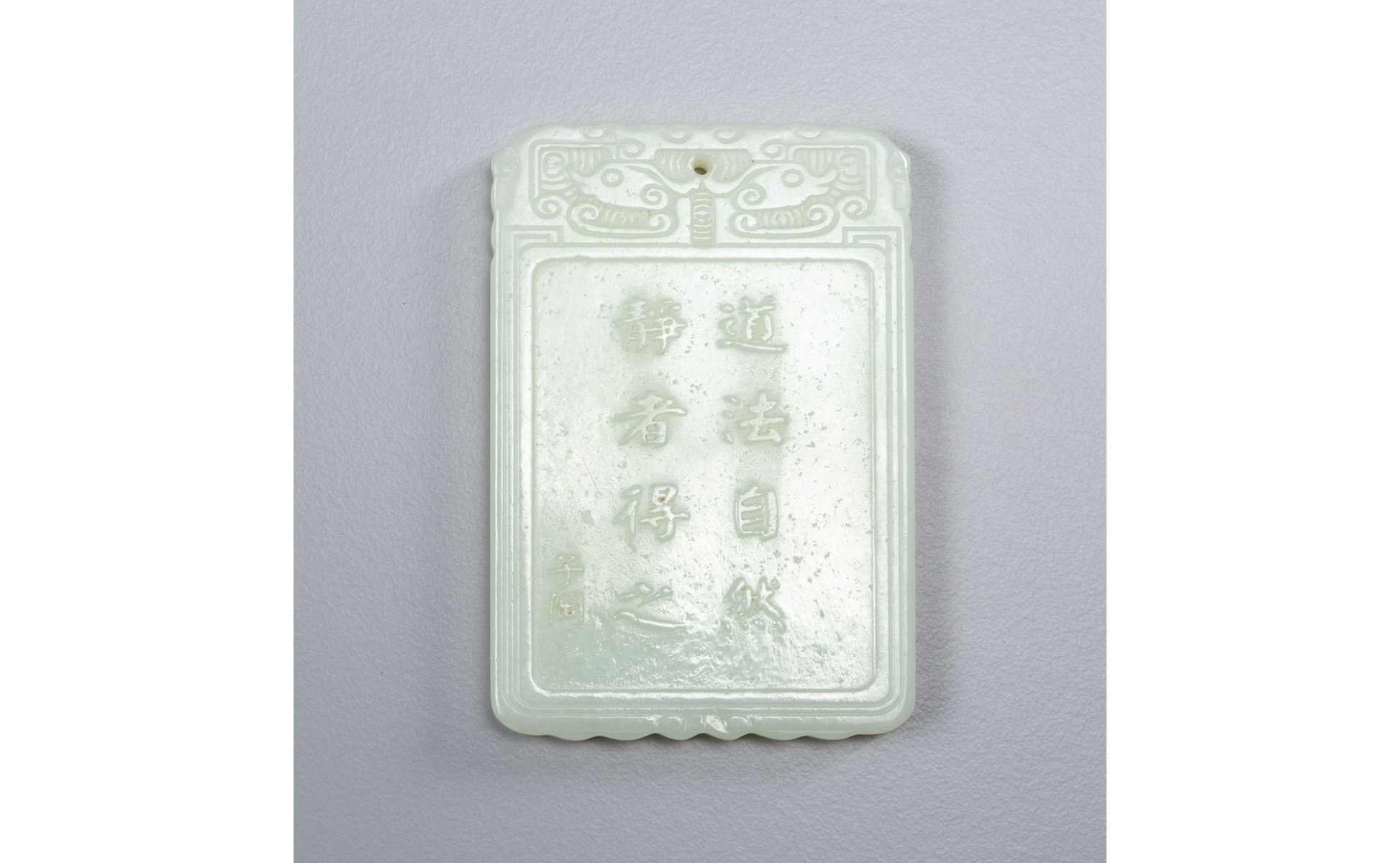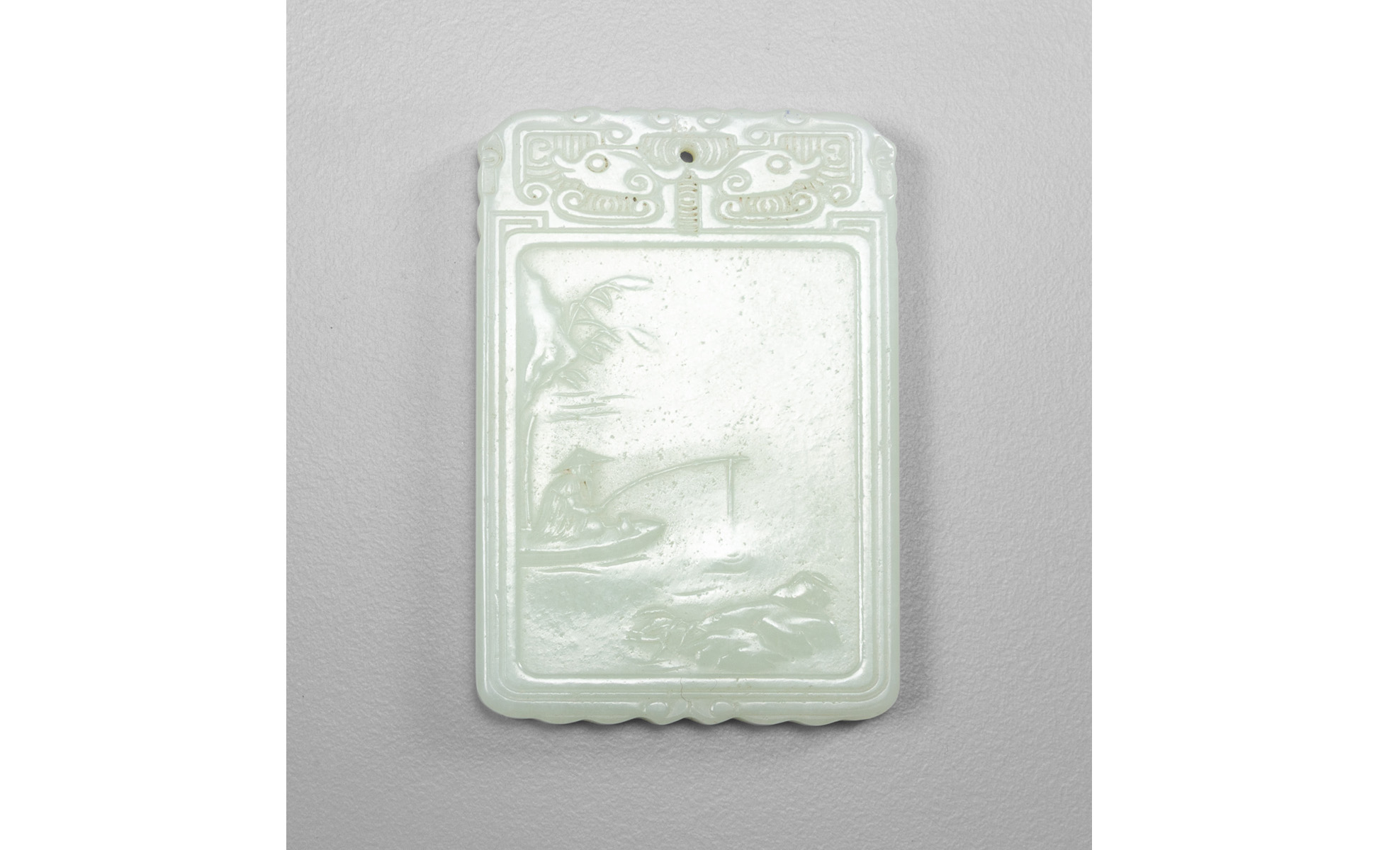 Placca in giada intagliata con paesaggio e pescatore Cina