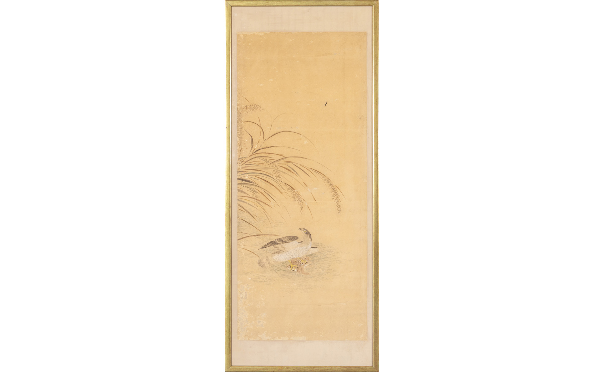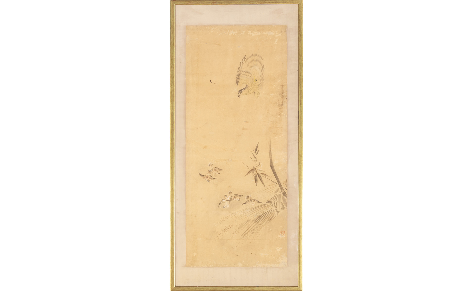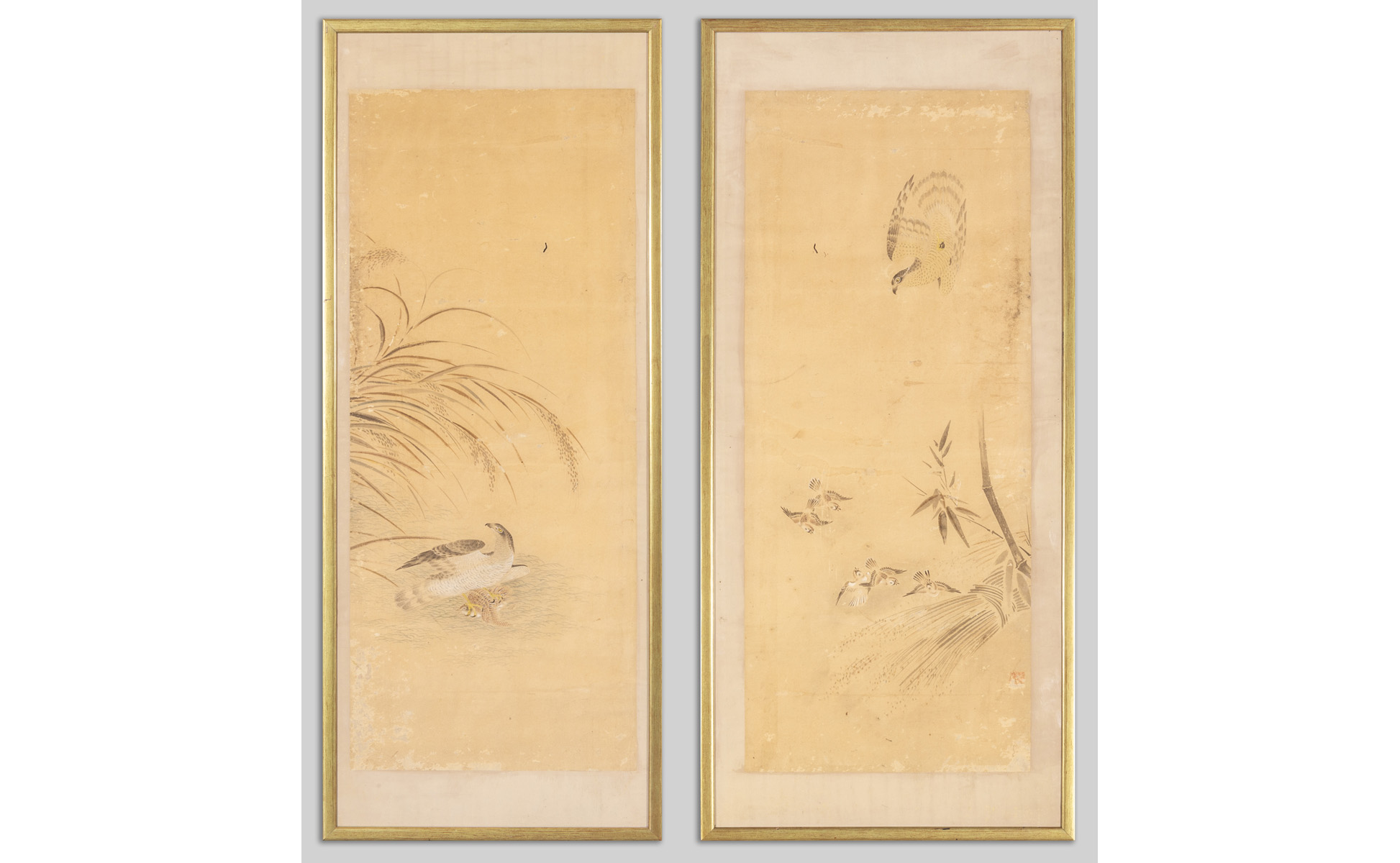 Due pannelli su carta dipinta raffiguranti volatili Cina sec.XIX