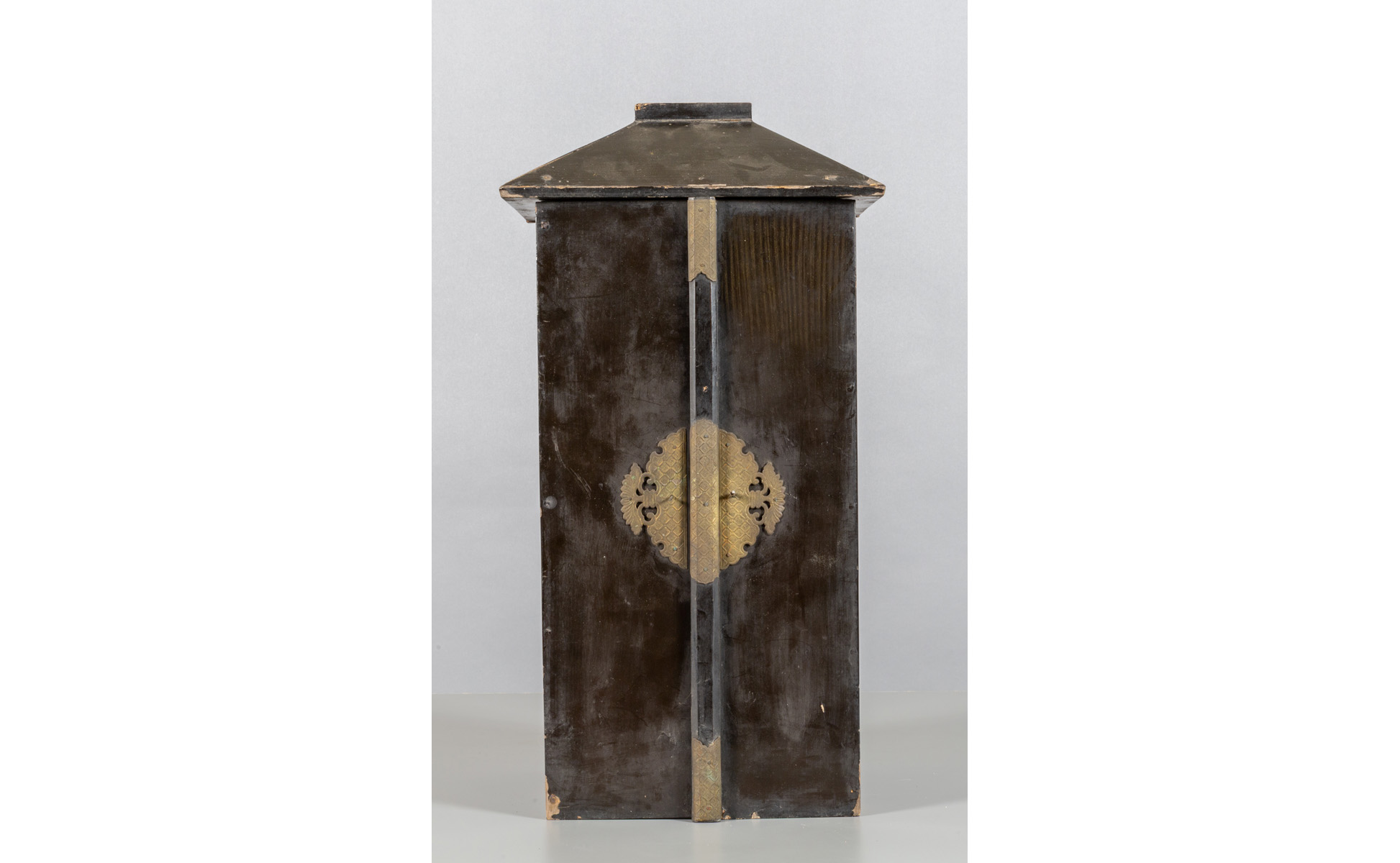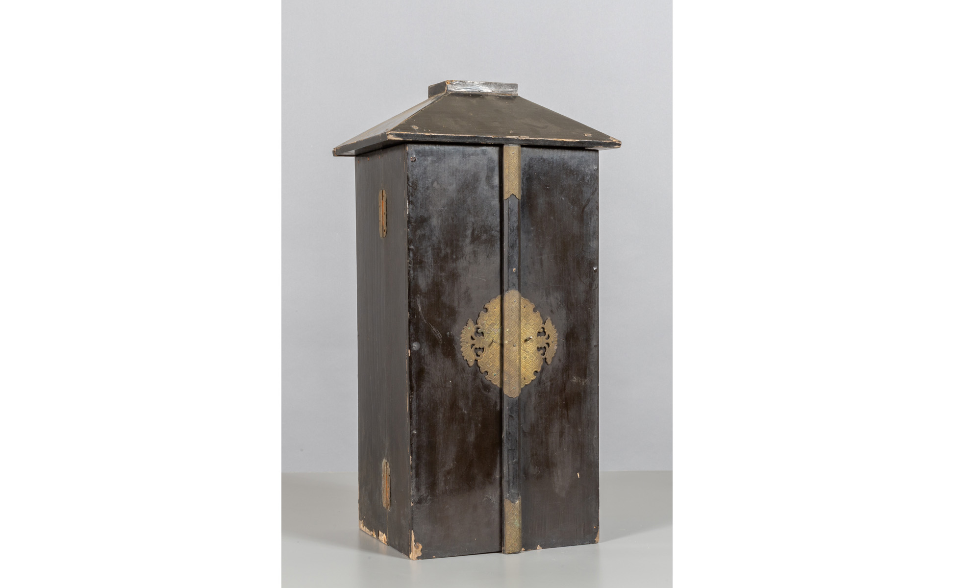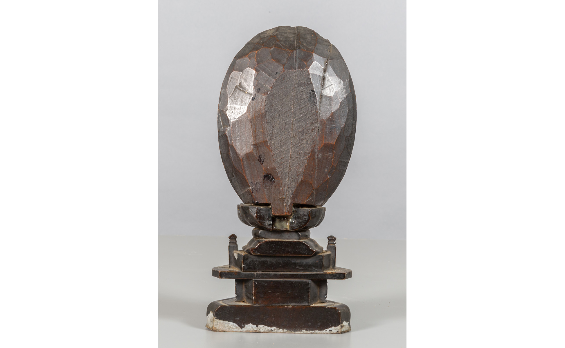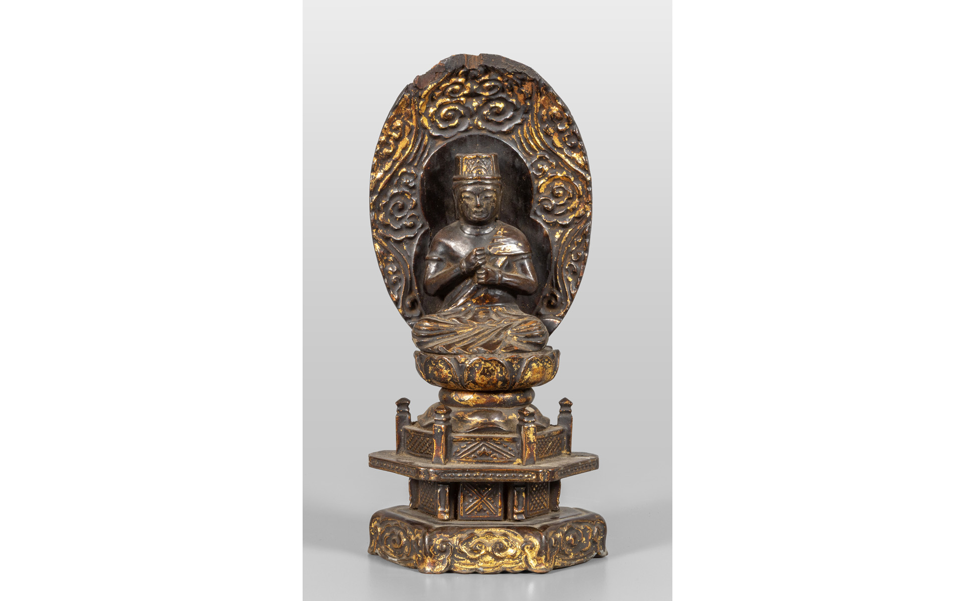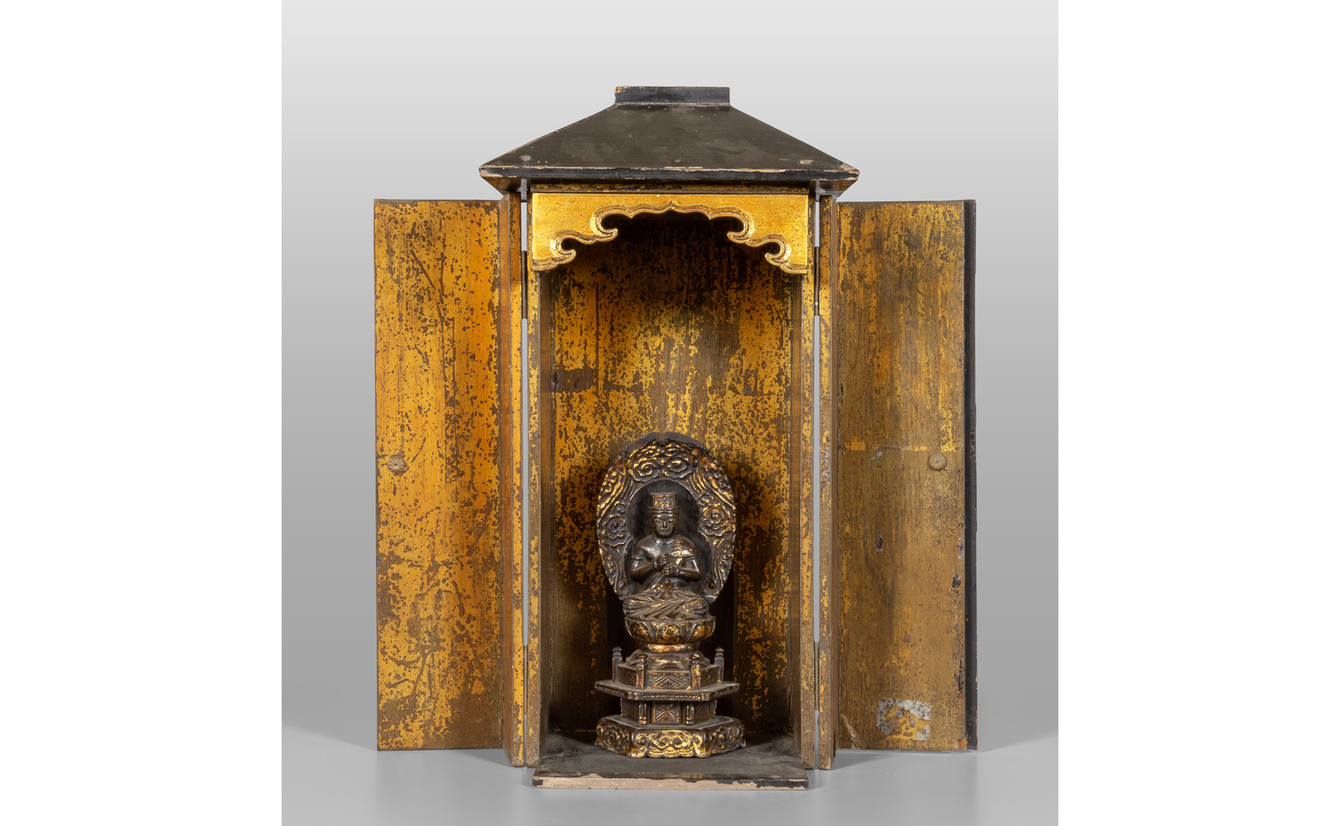 Buddha scultura in legno intagliato con tracce di doratura dentro cornice Giappone sec. XIX