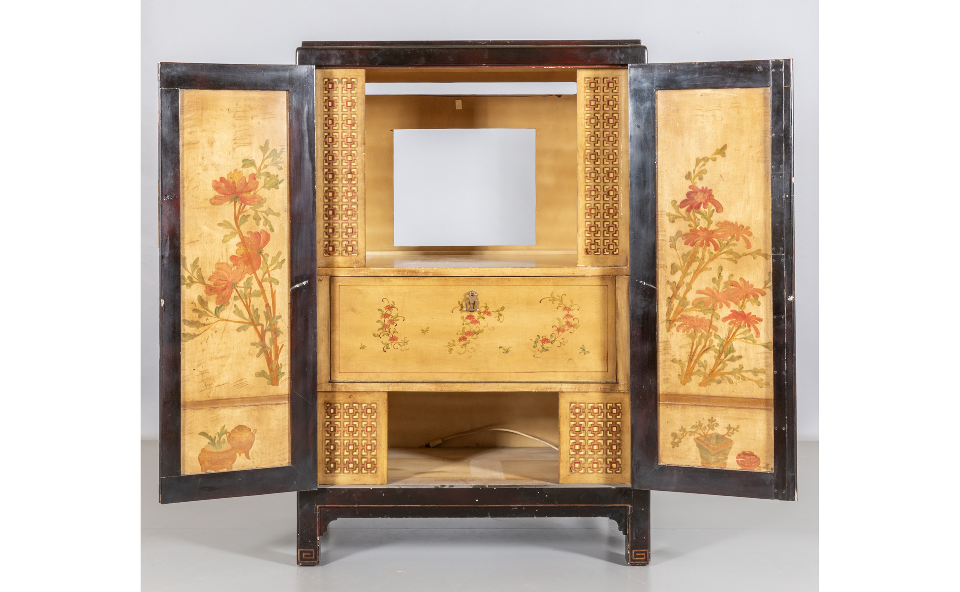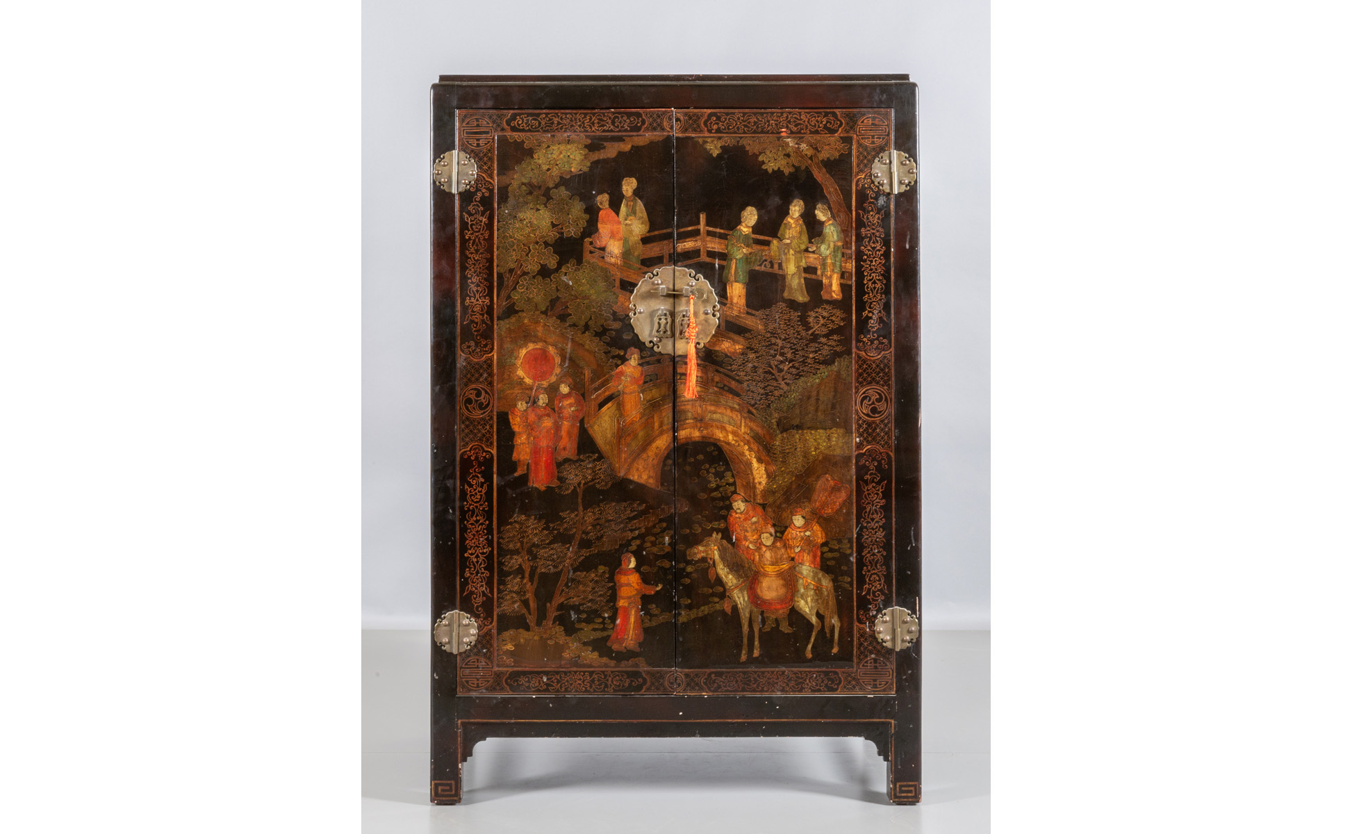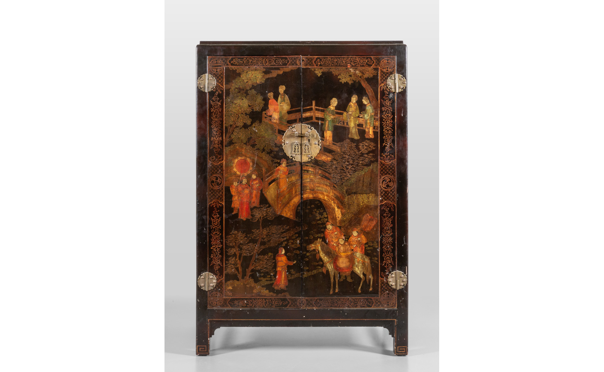 Piccolo armadio in lacca nera decorato con figure orientali Cina I metà sec.XX