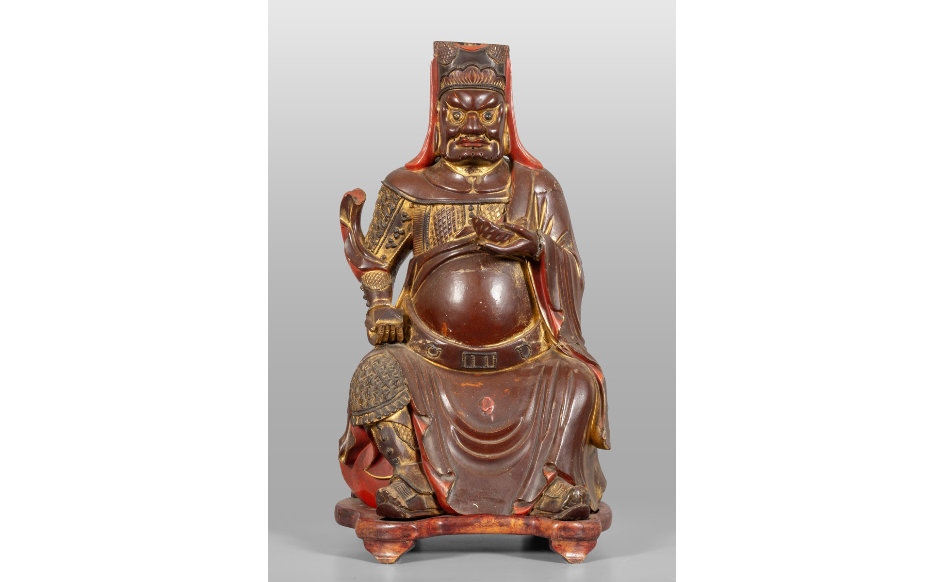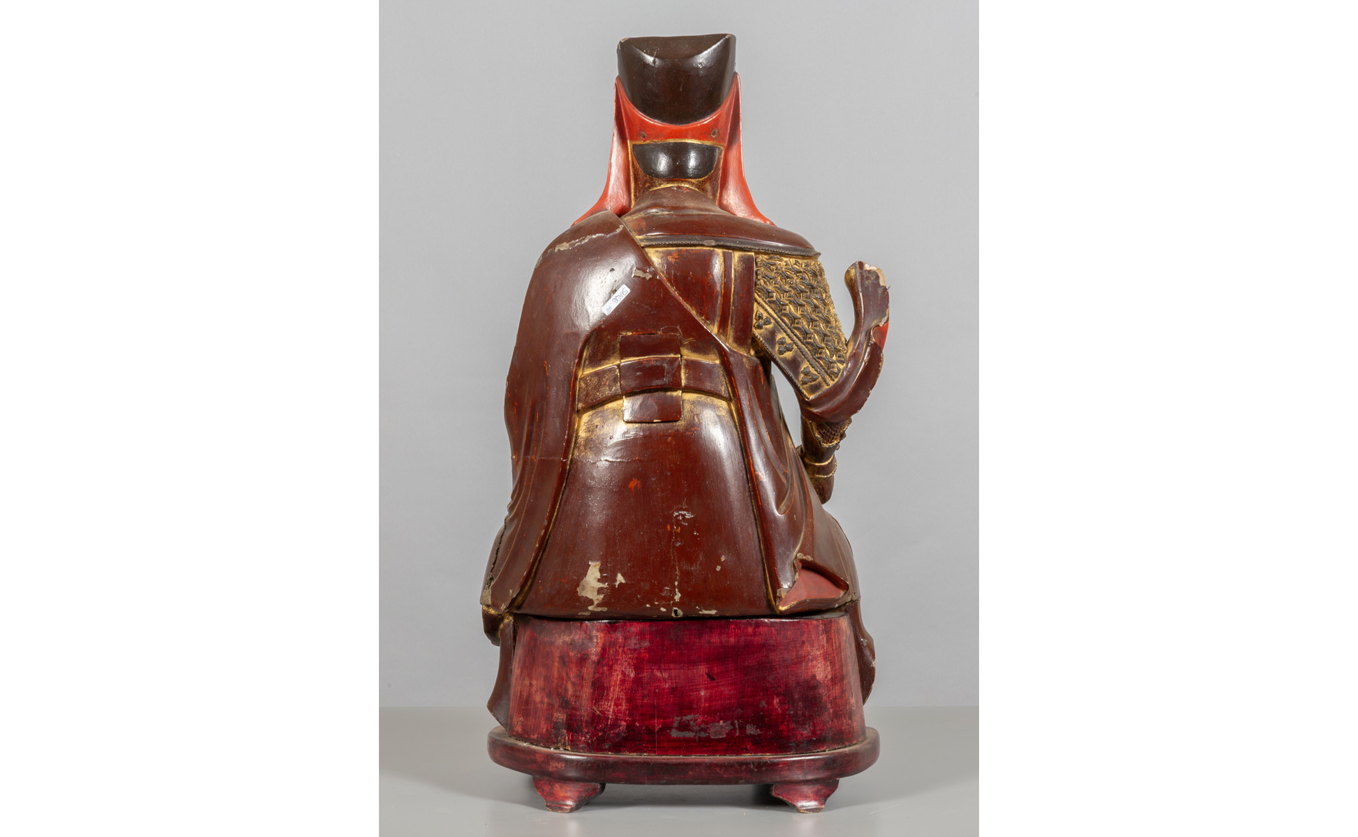 Dignitario scultura in legno laccato rosso Cina inizi sec.XIX