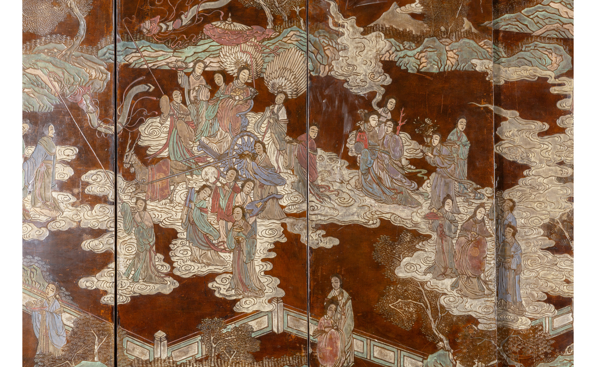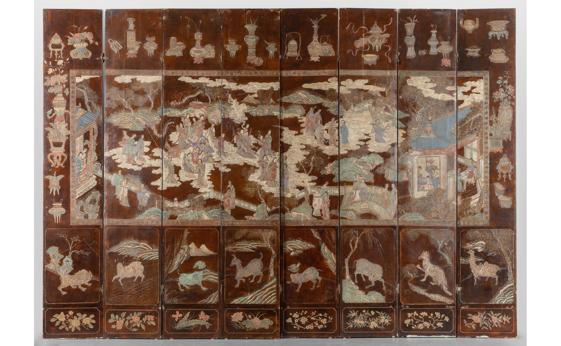 Paravento a otto ante in lacca coromandel Cina fine sec.XIX/XX