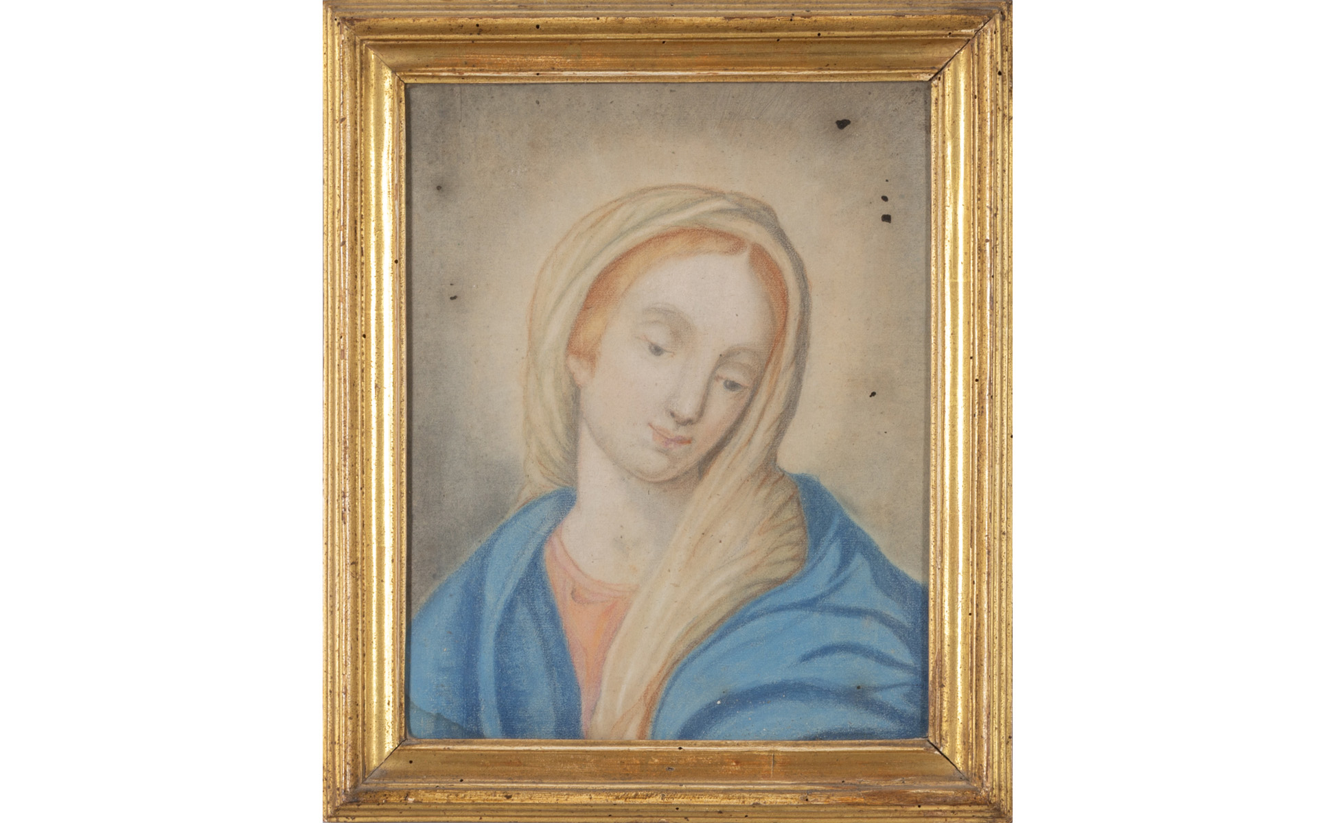 Scuola italiana sec.XVIII 'Madonna' tempera su carta cornice in legno intagliato e dorato