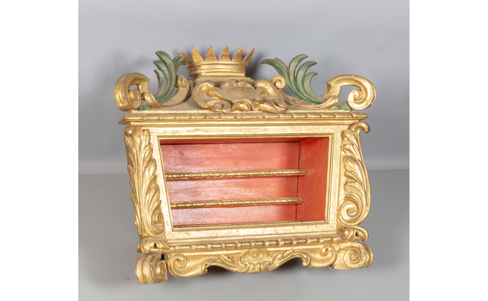 Teca Luigi XIV in legno finemente intagliato e dorato sec.XVIII