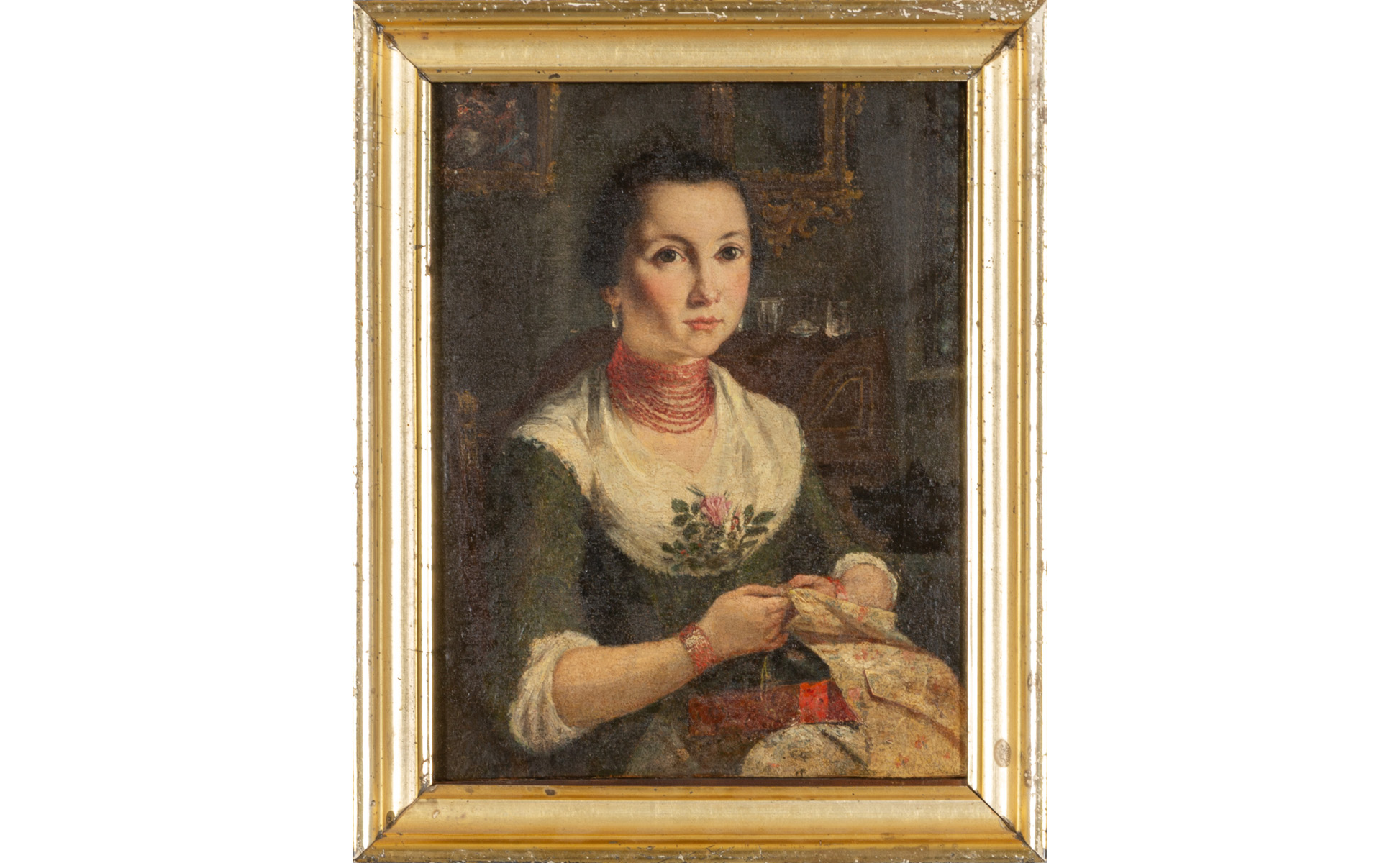 Scuola lombarda sec.XVIII 'Ritratto di dama con collana di corallo' olio