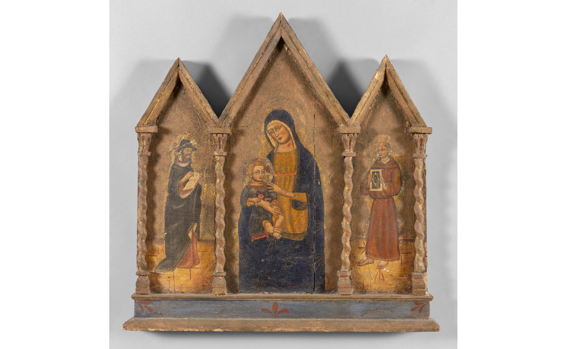 'Madonna con Bambino e Santi' trittico dipinto a fondo oro fine sec.XIX
