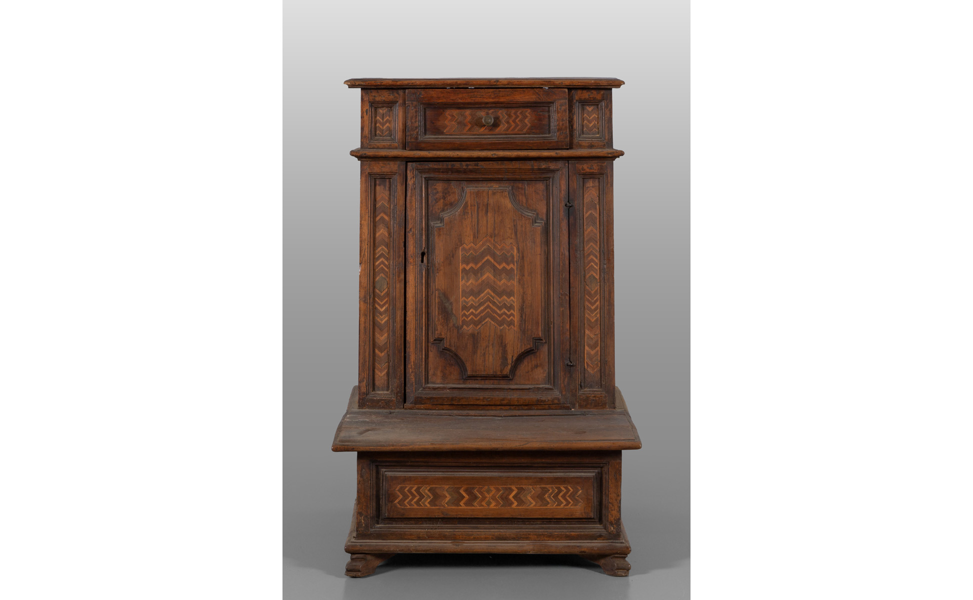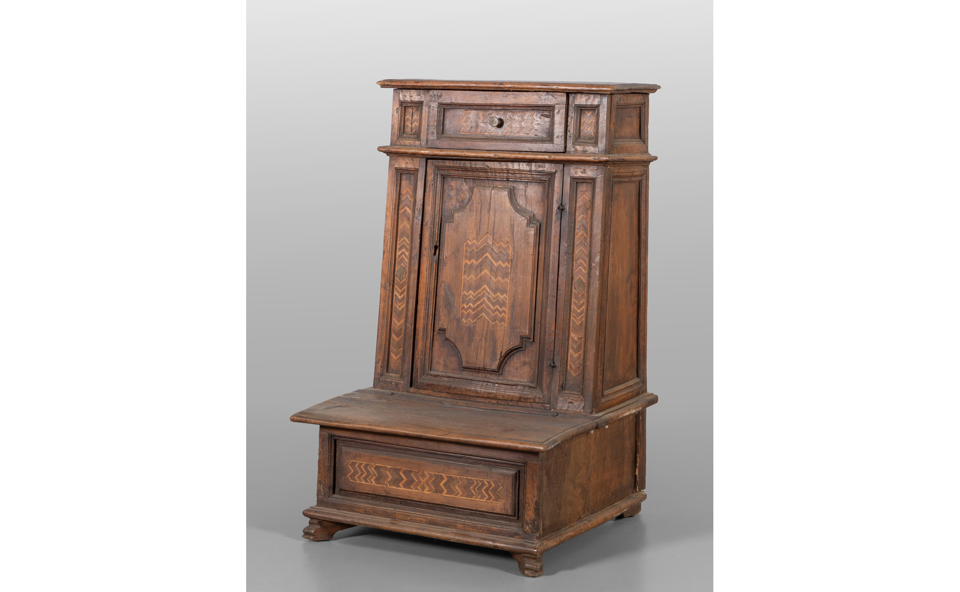 Inginocchiatoio intarsiato e filettato a motivi geometrici sec.XIX