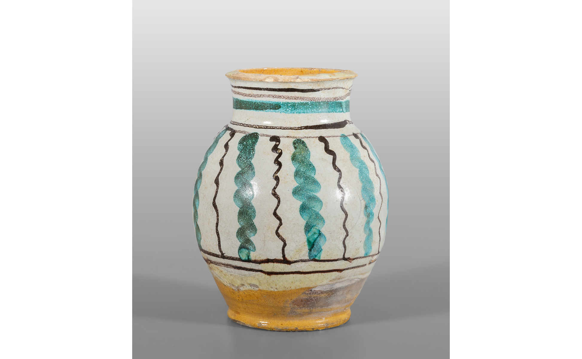 Vaso in maiolica a decoro verde e giallo sec.XIX
