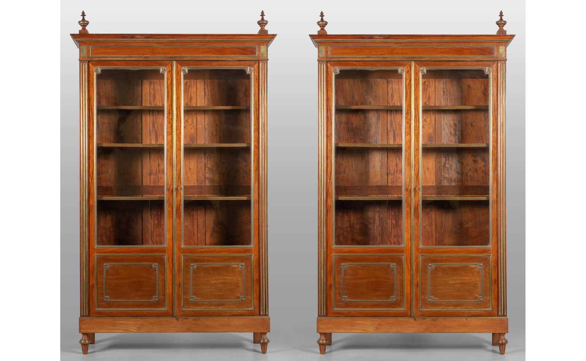 Coppia di librerie a due ante con vetri lastronate in palissandro e filettate in metallo dorato Francia sec.XIX