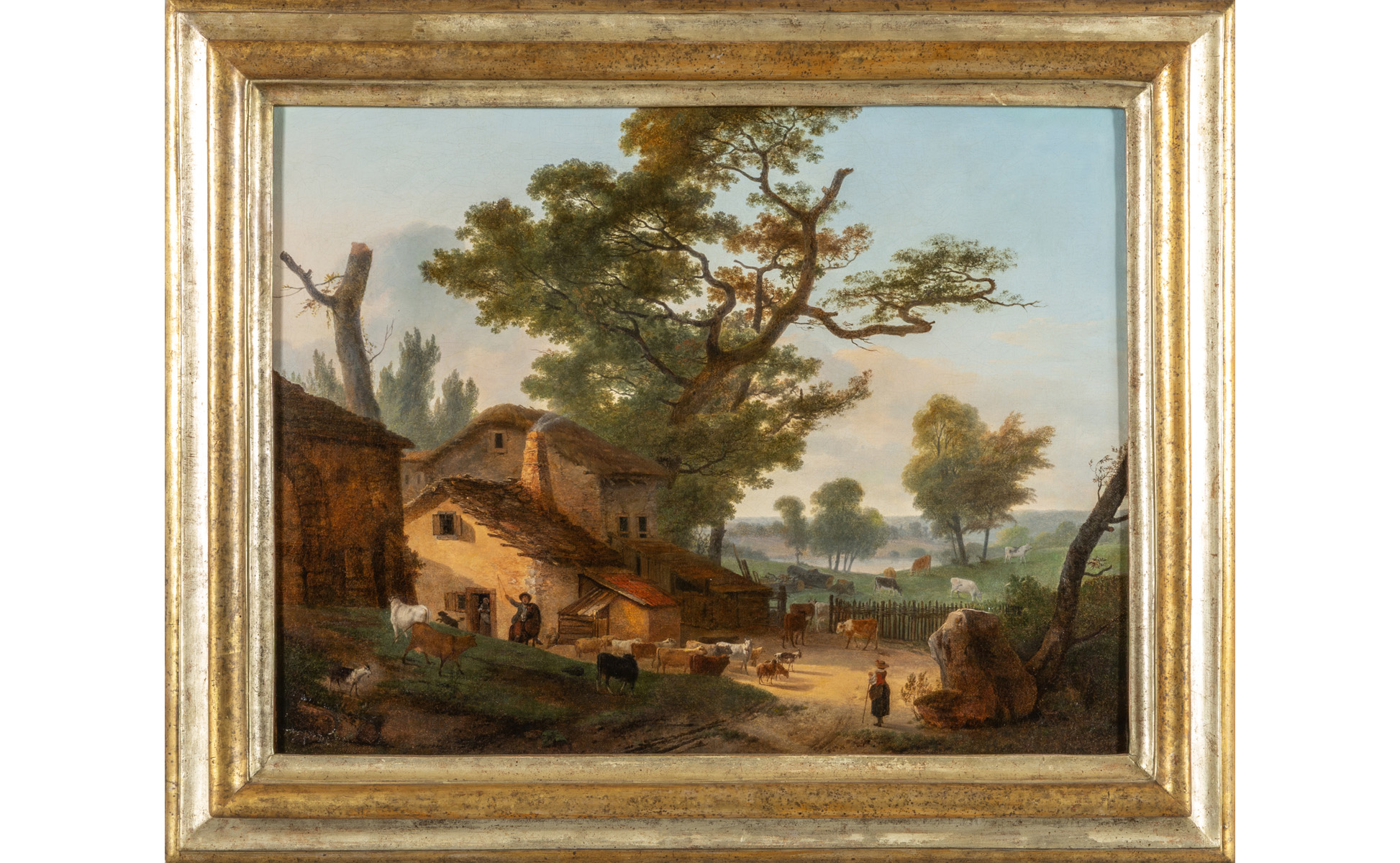 Scuola fiamminga I metà sec.XIX 'Paesaggio con pastori e armenti' olio