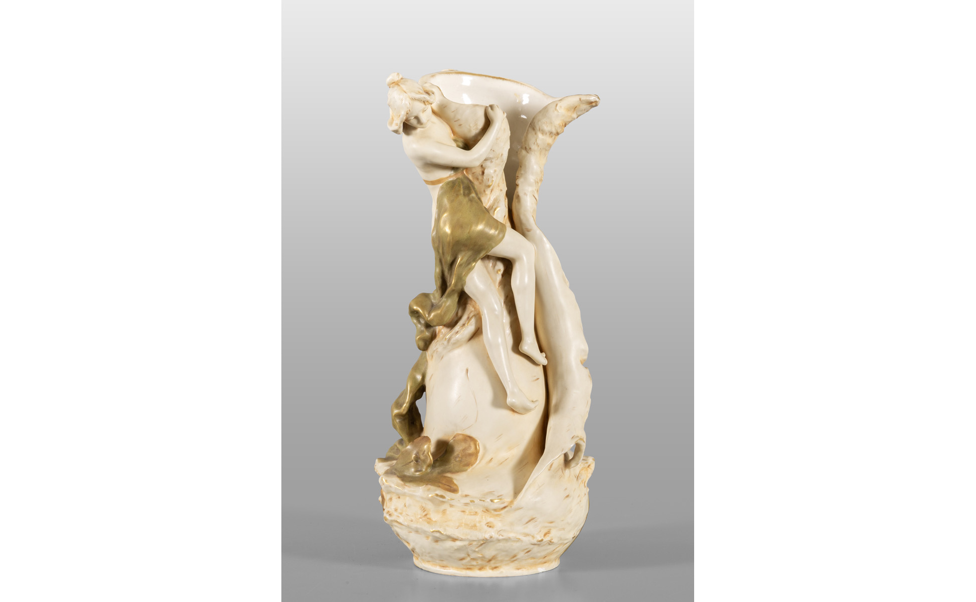 Vaso in ceramica policroma decorato con ninfa marcato Royal Dux Boemia inizi sec.XX