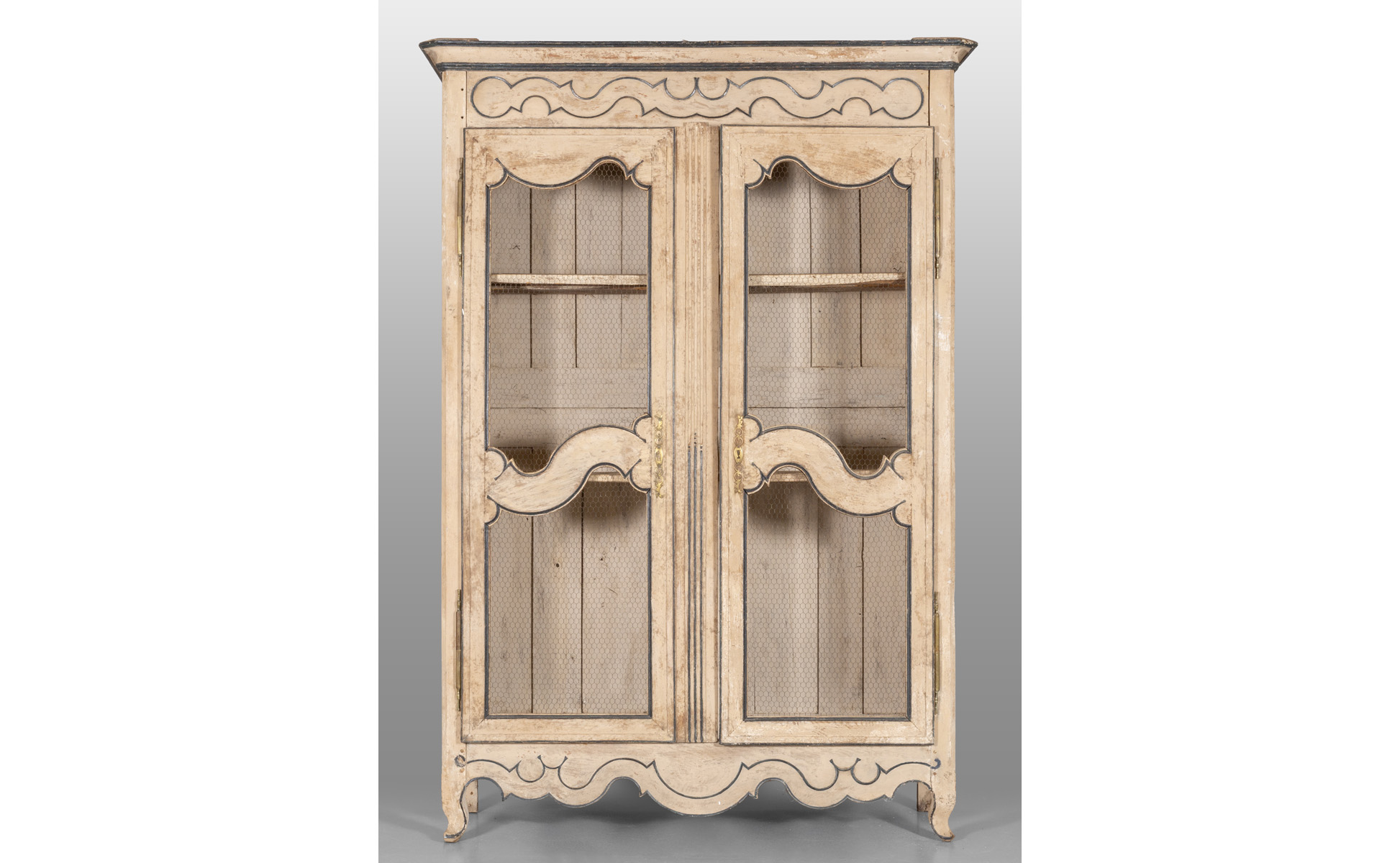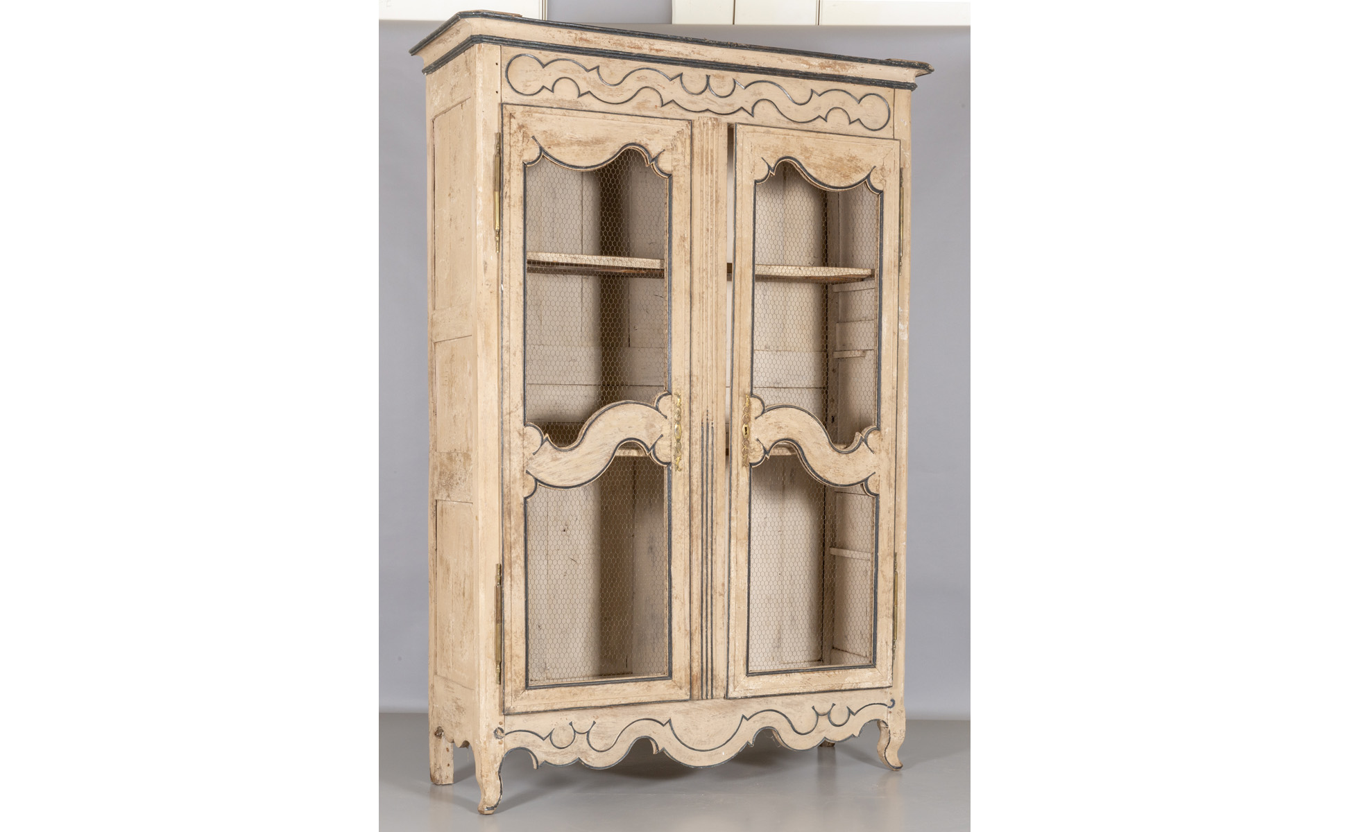 Armadio in legno intagliato e laccato a fondo beige con listelli blu Francia sec.XIX