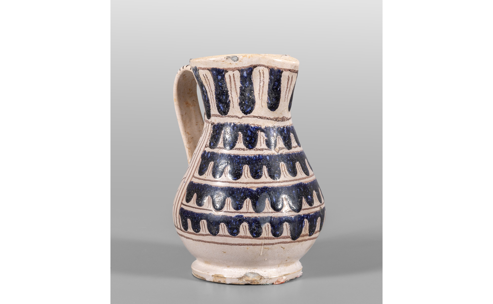 Brocca con manico in maiolica decoro a zaffera Orvieto sec.XIX