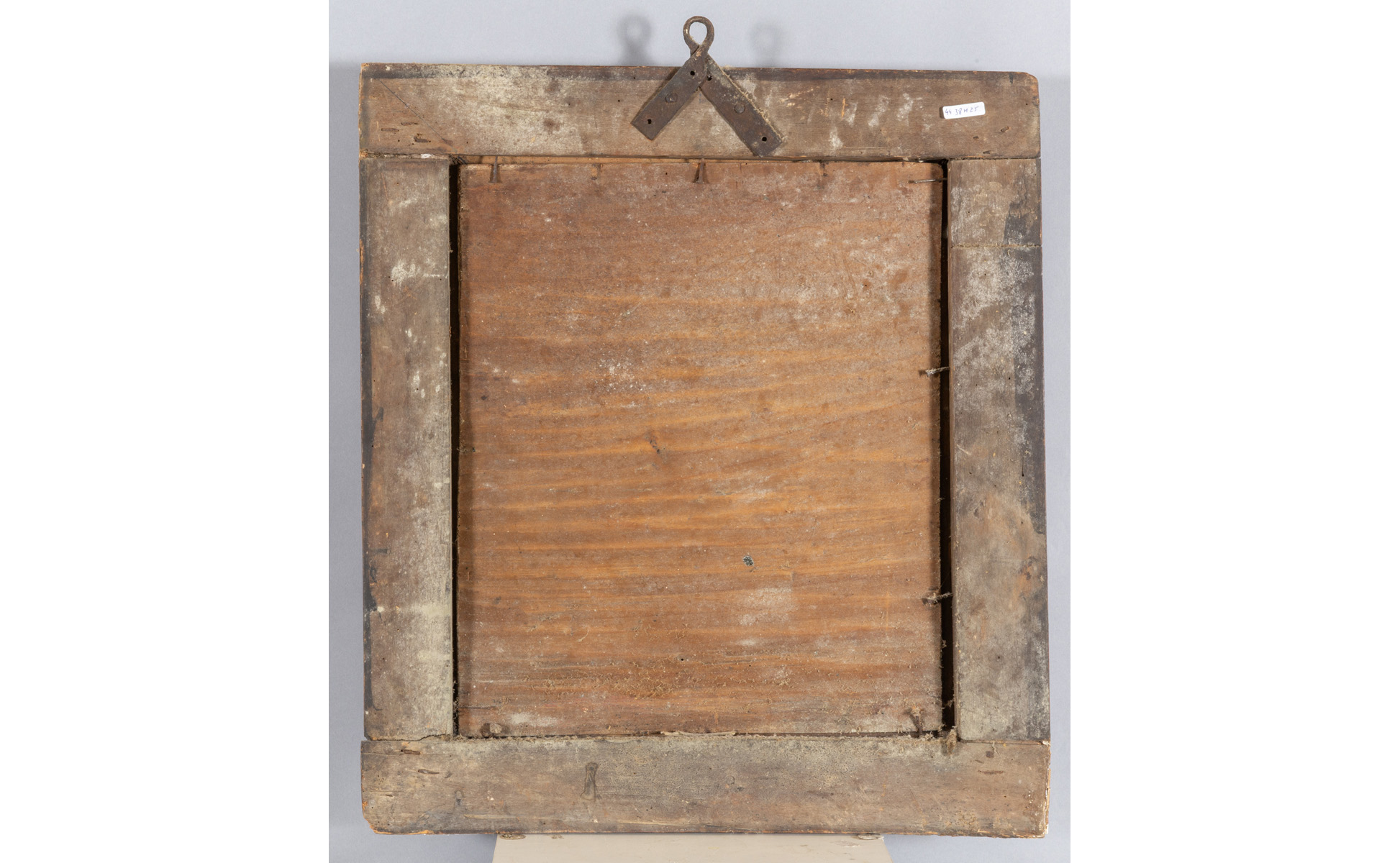 Scuola italiana sec.XVII 'Madonna con Bambino' olio su tavola cornice coeva in legno dorato a mecca